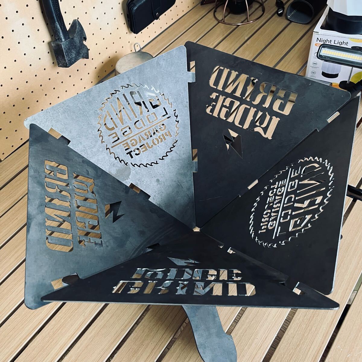超激レア カード式組立焚き火台 コンパクト収納 鉄製 耐熱性抜群 重厚感 アウトドア キャンプ 携帯便利 46×48×21cm
