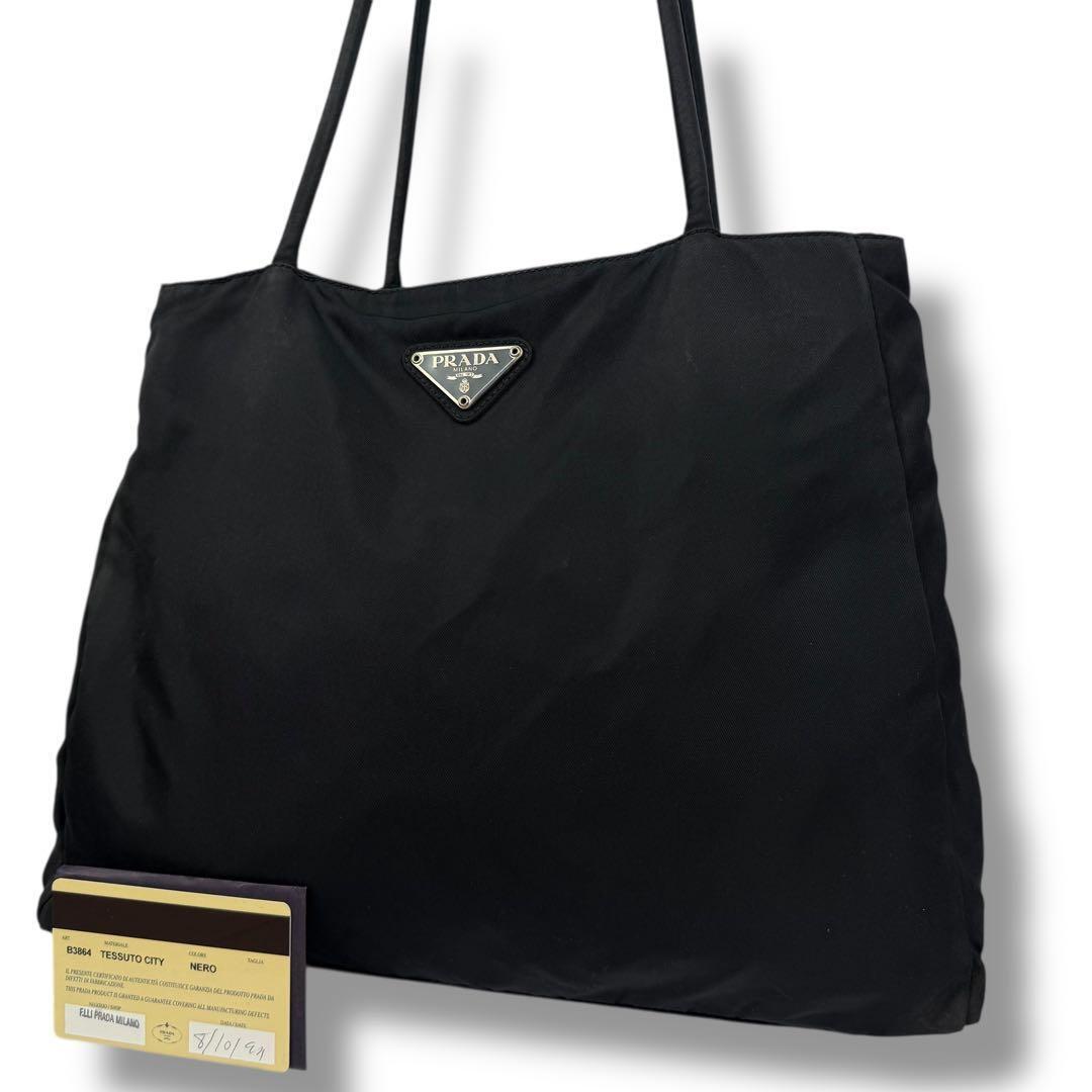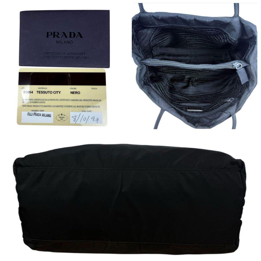 【Gカード付き】PRADA プラダ 三角ロゴ トート ハンド バッグ 肩掛け カバン ナイロン 三層式 ブラック 黒 白タグ B3864 LAMPOジップ