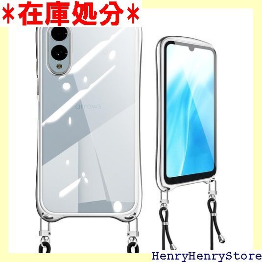 arrows We2 F-52E ケース ショルダー クリア arrows We2 FCG02 カバー 斜めかけ 縄掛け 肩掛け 首掛け ストラップ付き 耐衝撃 メッキ加工 薄型 軽量 TPU バンパー アクオス 韓国 かわいい スマホケース シルバー 1890