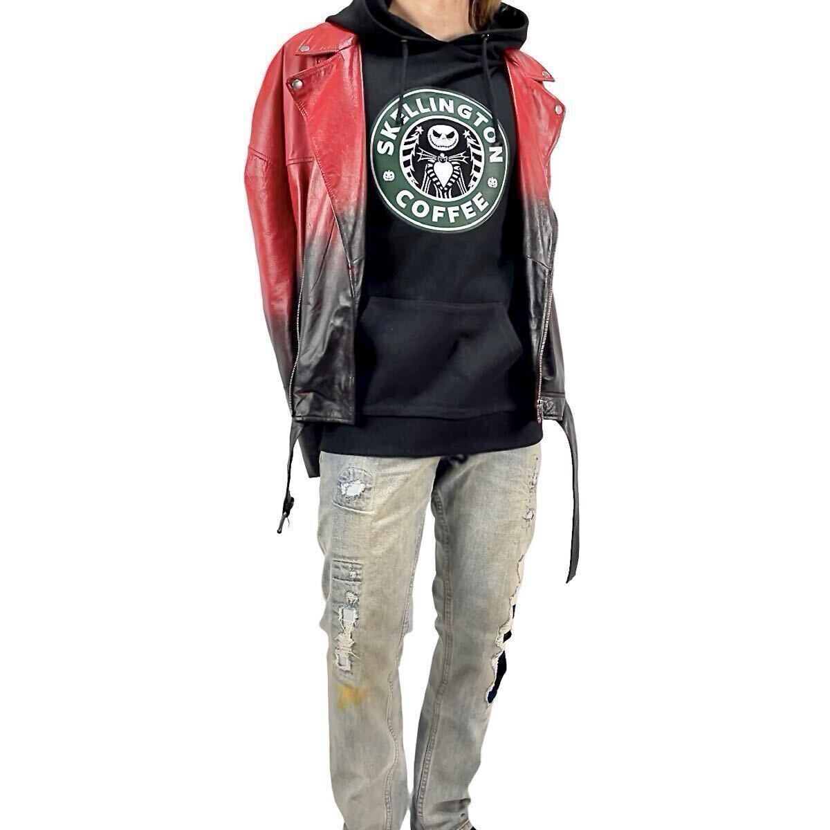 ナイトメアービフォアクリスマス ジャックスケルトン ハロウィンタウン パンプキンキング スタバロゴ パーカー