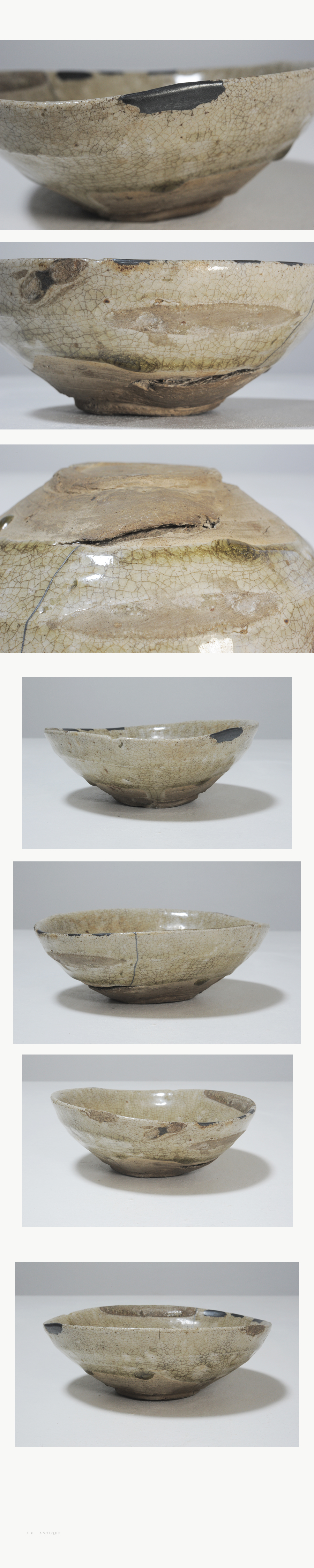 古瀬戸 灰釉平茶碗 15世紀 室町時代    古道具 古陶器 民藝 茶碗