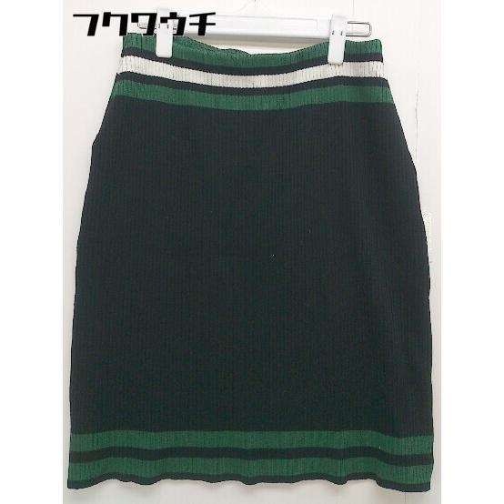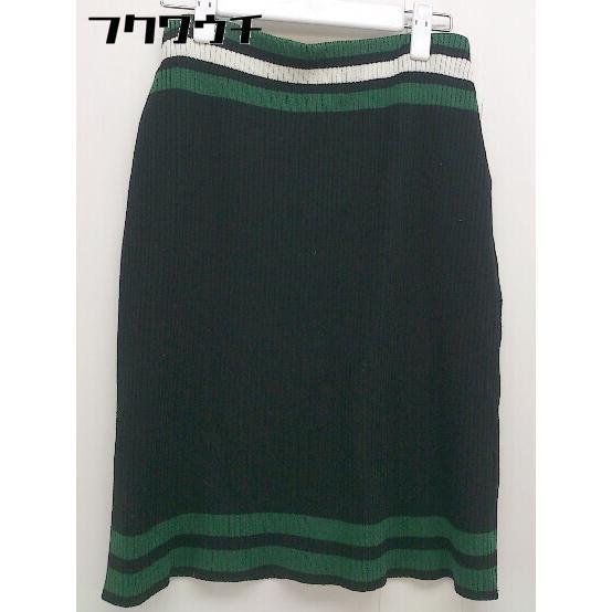◇ Ray BEAMS レイ ビームス ライン ニット 膝丈 フレア スカート サイズ 1 ブラック グリーン ホワイト レディース