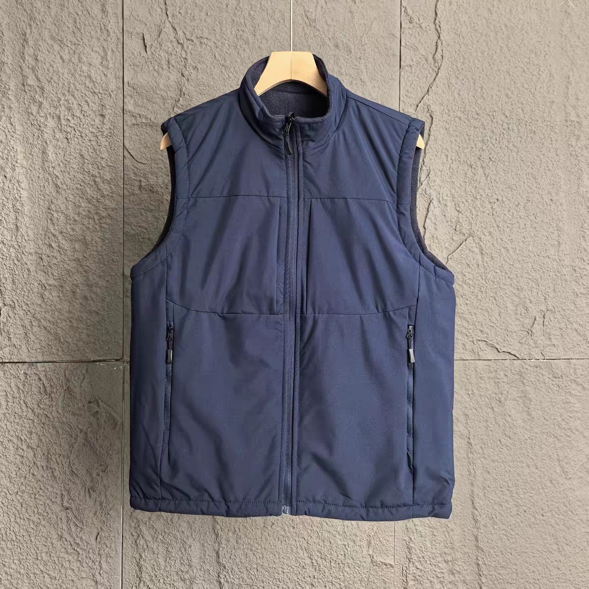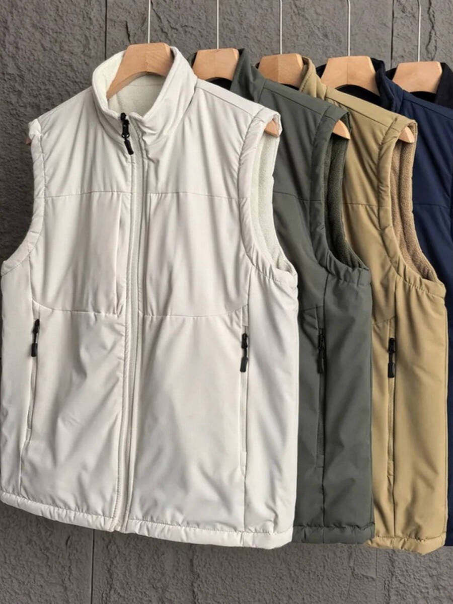 YF008-5XL 紺色 高品質 両面着用可能 軽量で保温性のある メンズ秋冬用厚手フリーススタンドカラー作業用カジュアルベスト