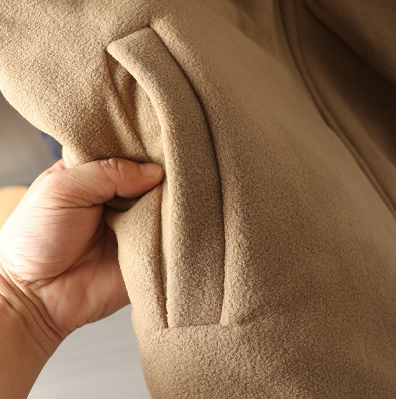 両面ともいい感触!粒を振った綿毛は肌に優しく、体に暖かい布団を巻いたような格好をしている。滑らかな面は繊細で粗くなく、重ね着して糸を引かない。長時間着ても汗が蒸れず、保温と通気性を両立し、秋冬の快適感がいっぱいになる。