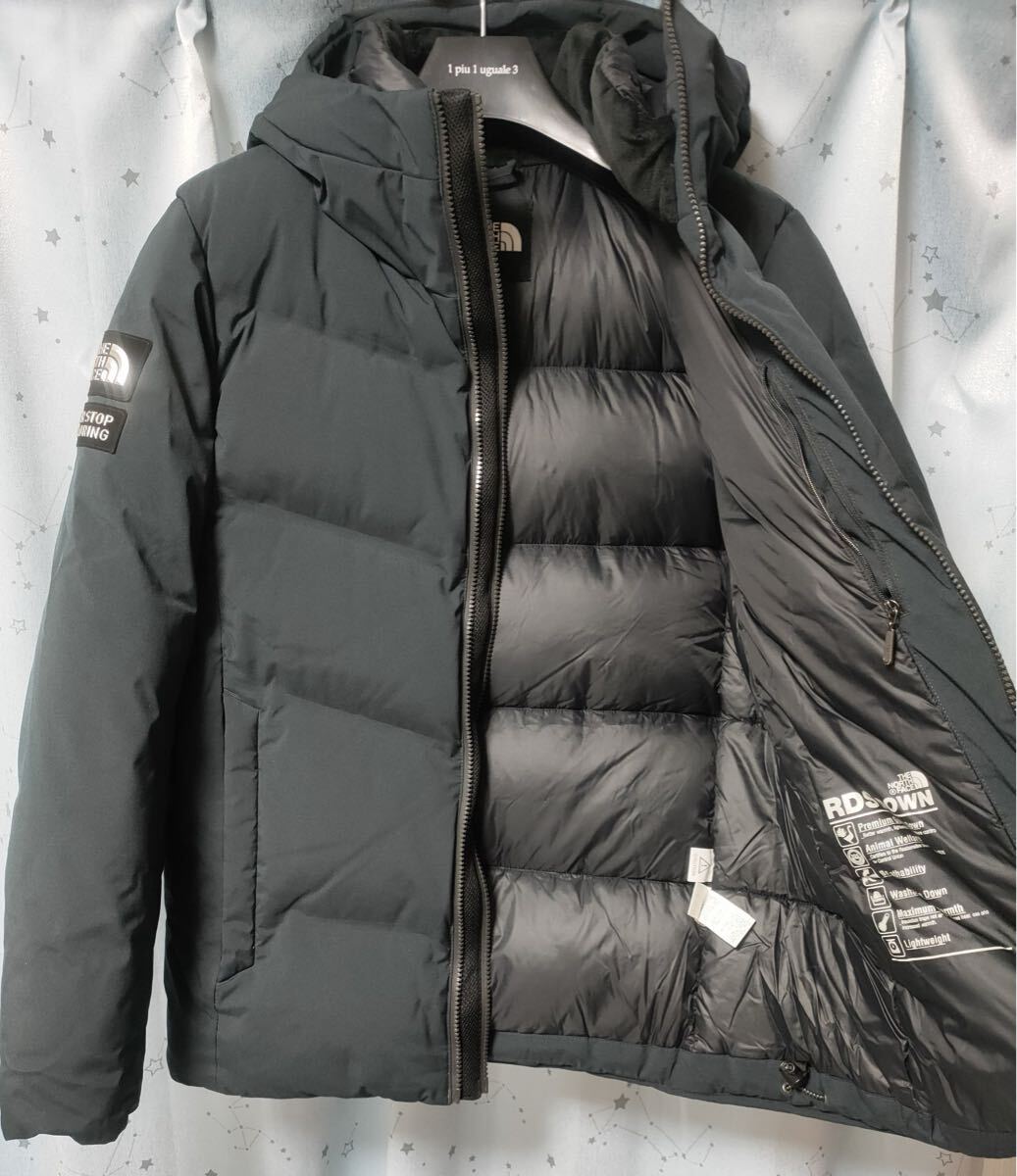 ロゴはシルバー色で高級感が有り、左袖先辺りにジップ式隠しポケット付き、首周りはハイネックジップデザイン性、防寒性の高い造り。