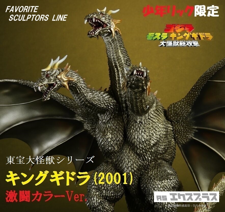 【新品・輸送箱未開封】エクスプラス 東宝大怪獣シリーズ 「キングギドラ(2001) 激闘カラーVer.」少年リック限定品