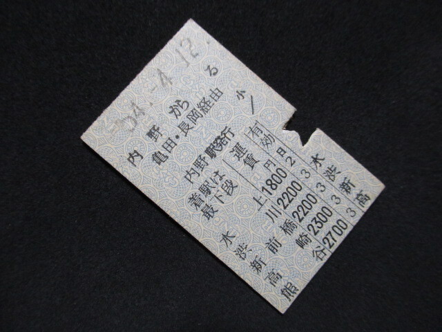 ■国鉄 準片 A型券 内野から熊谷 亀田・長岡経由 2700円 S54.4.12