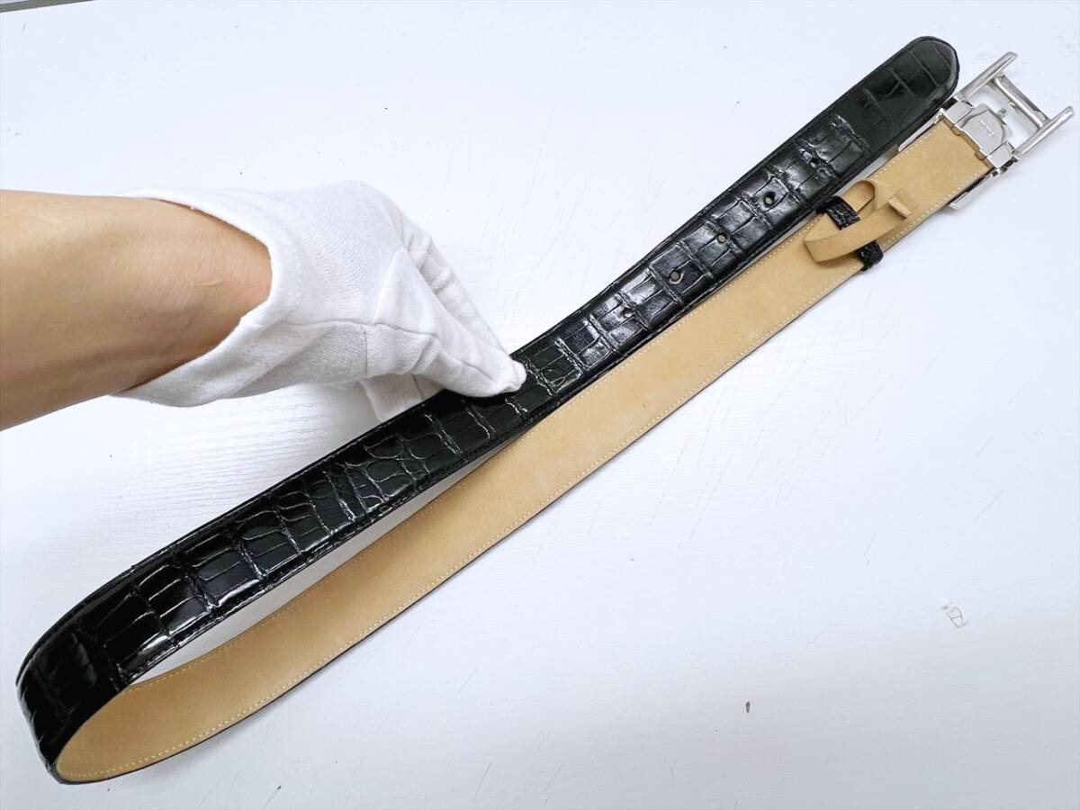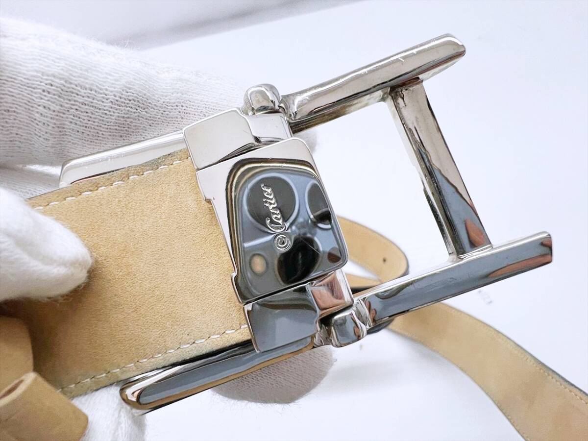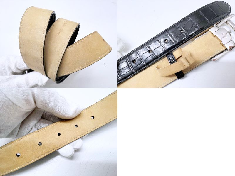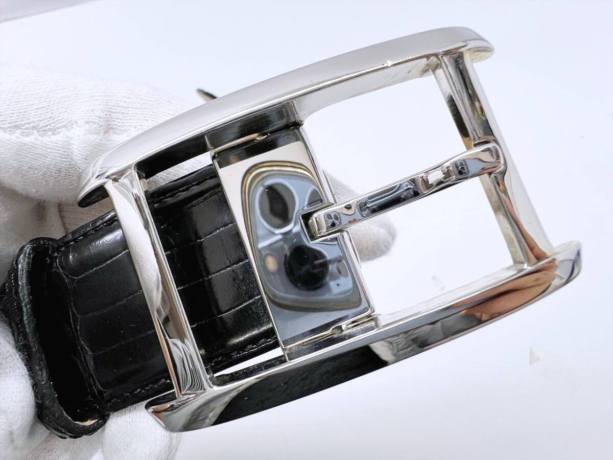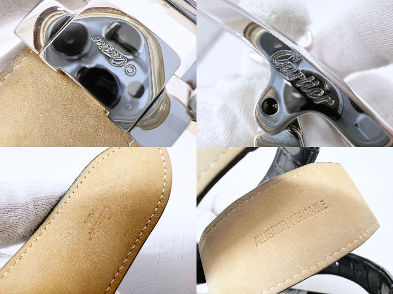 良好品 Cartier カルティエ タンクアメリカン アリゲーター レザー ベルト 黒 シルバー