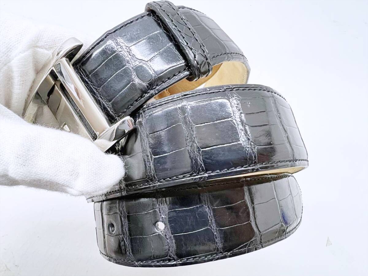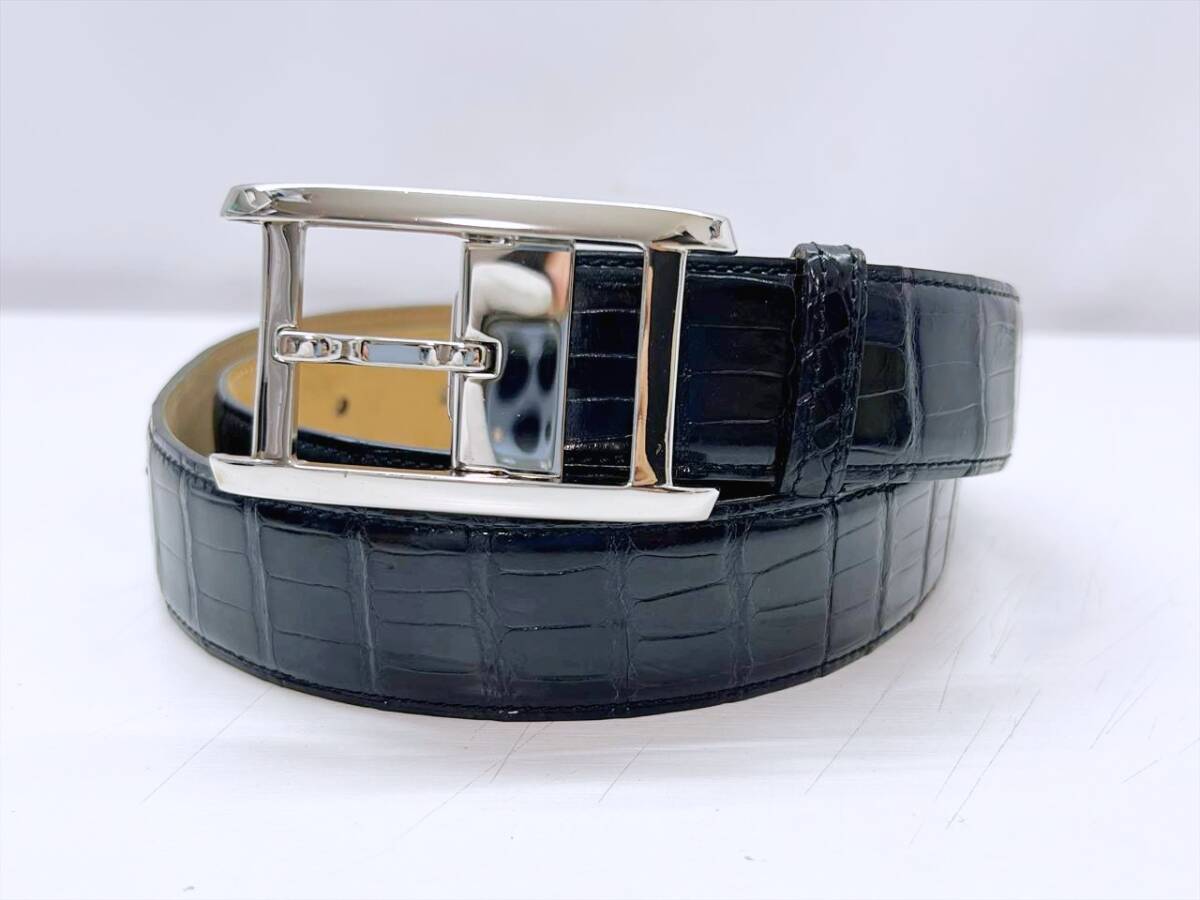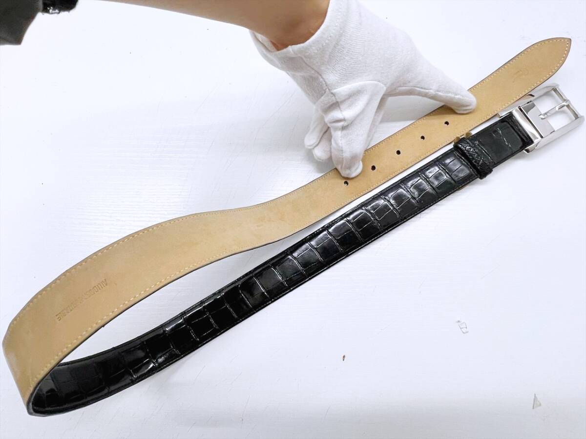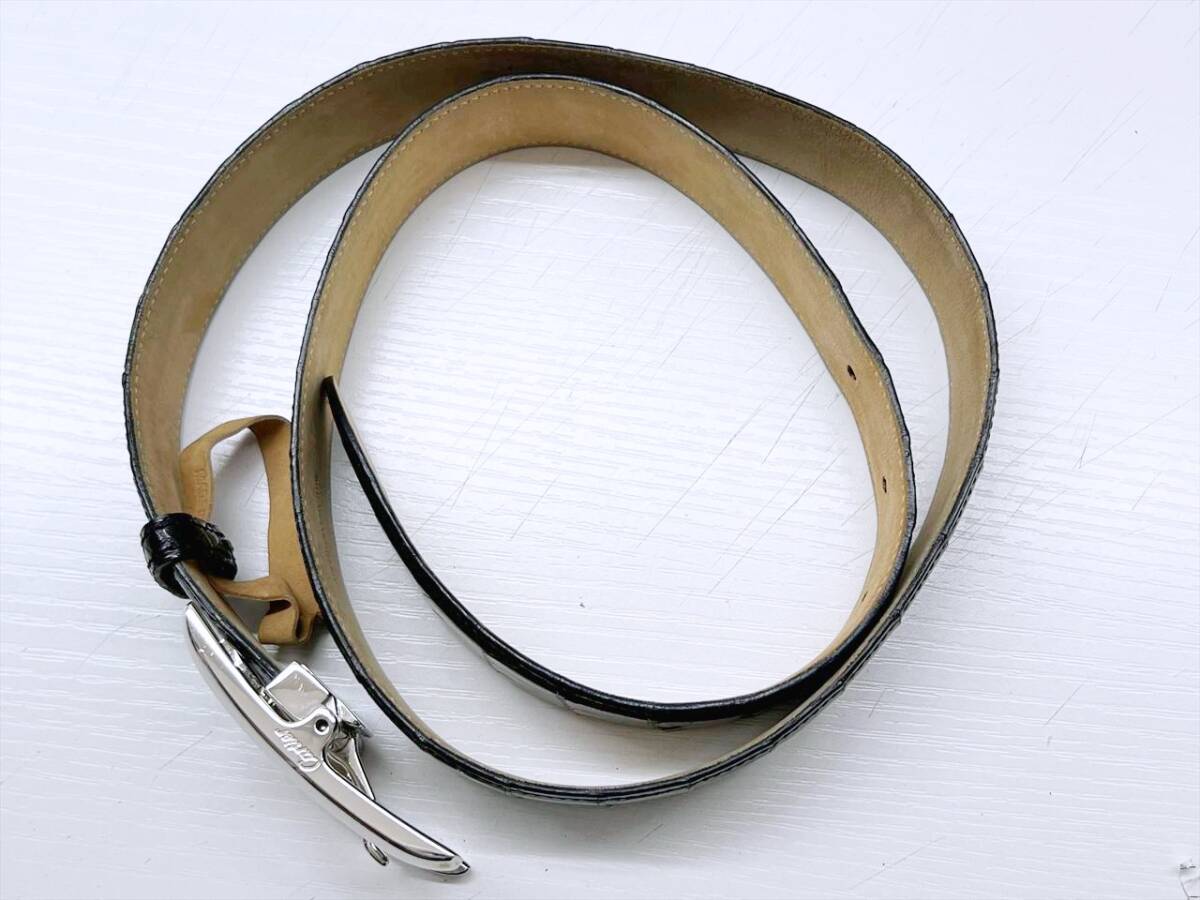 良好品 Cartier カルティエ タンクアメリカン アリゲーター レザー ベルト 黒 シルバー