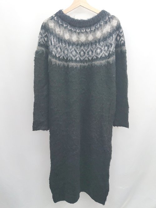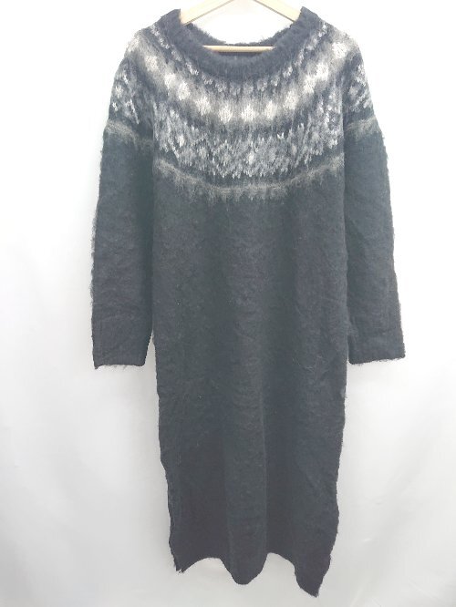 ◇ ⊇ AZUL EN CANTO 長袖 ロング 柄 ロングセーターワンピース サイズL ブラック系 レディース E