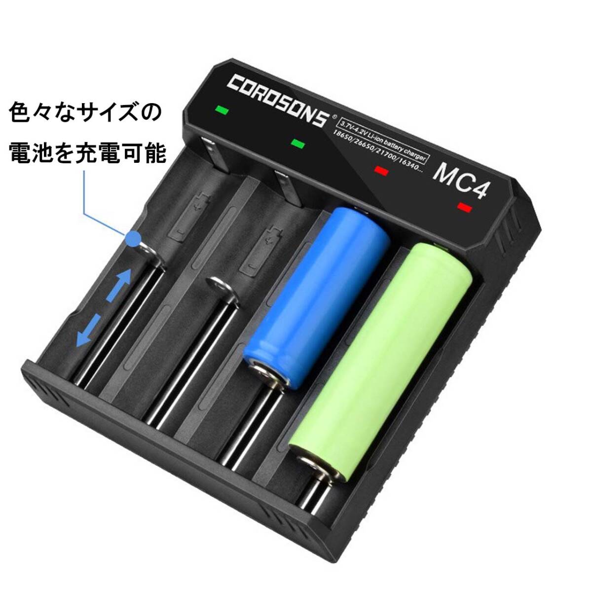 ICR123A 18650 10440 14500 16340 18350 18500 26650 万能充電器 急速充電器 バッテリー 懐中電灯 ヘッドライト 4個充電池