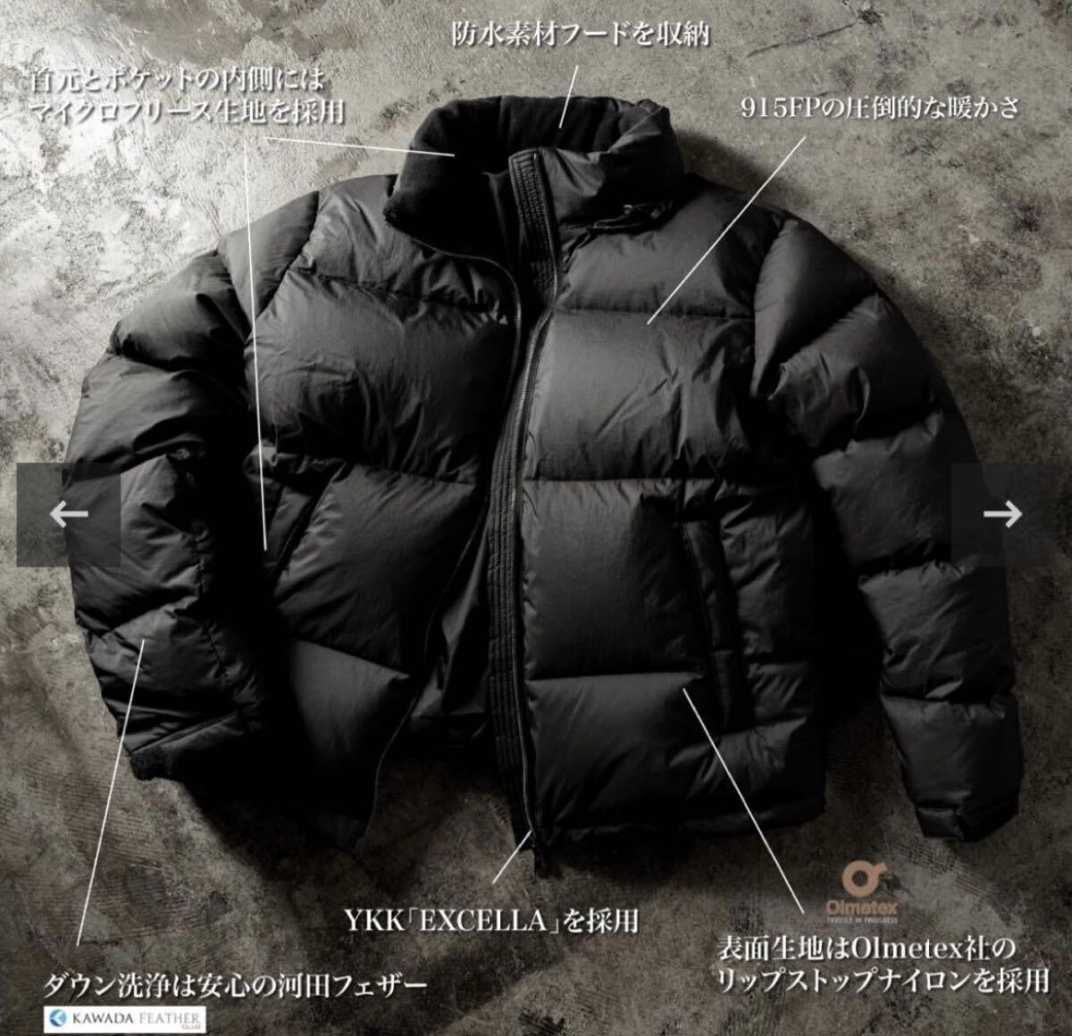 ・最高峰ダウン915FP以上の欧州ダウンを使用