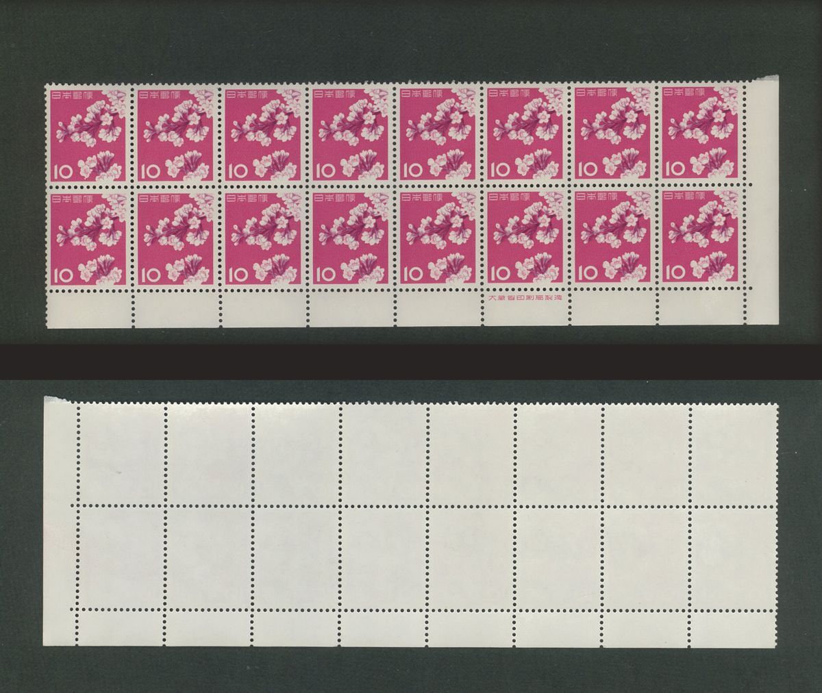 日本切手 第2次円単位「染井吉野」10円 銘版付16枚ブロック 未使用 裏左上微汚れ有