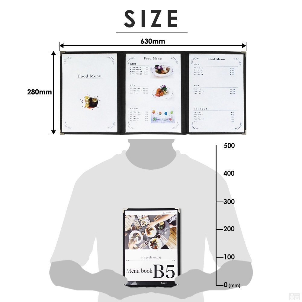 | 即納 メニューブック 6ページ(見開き3枚・6面) B5対応 観音 黒 |