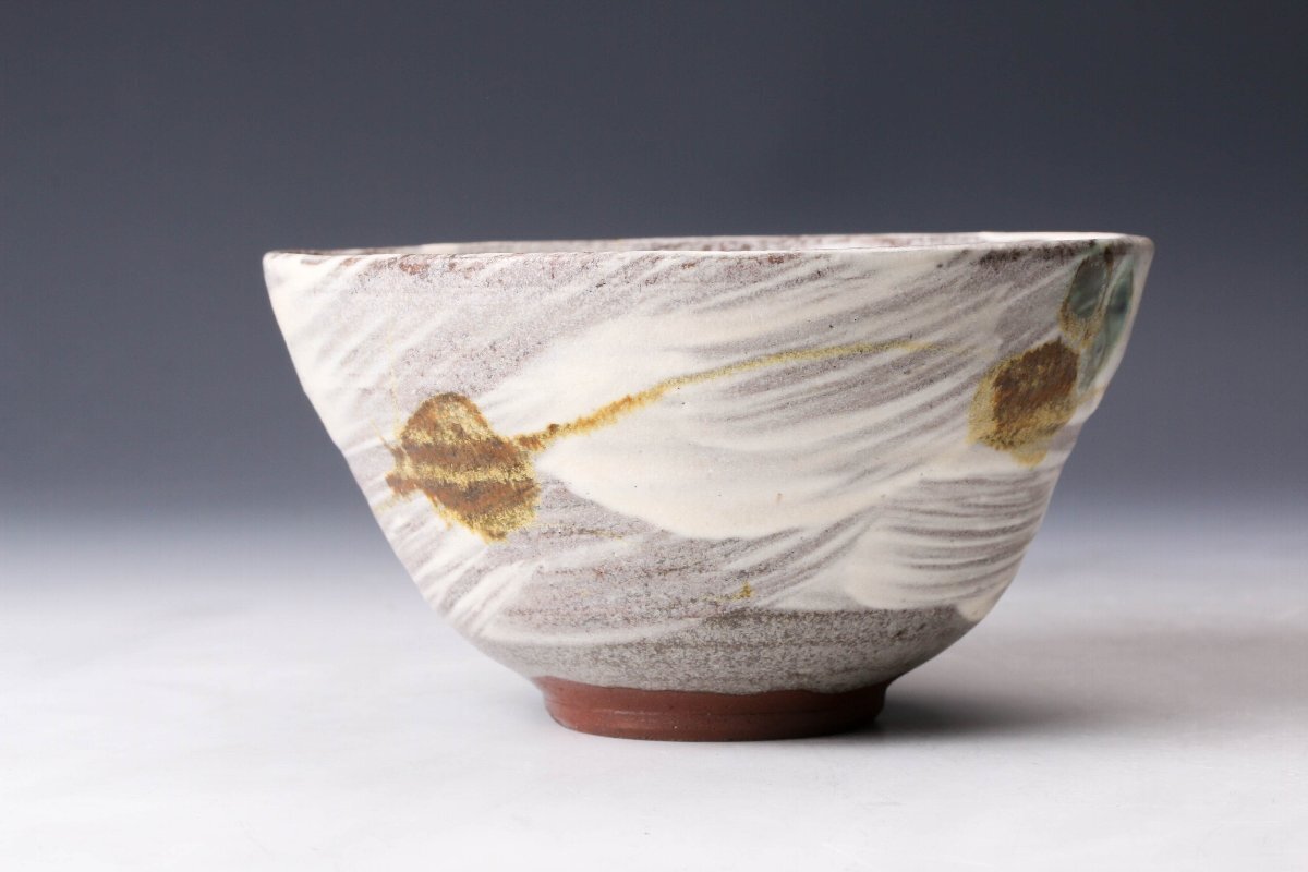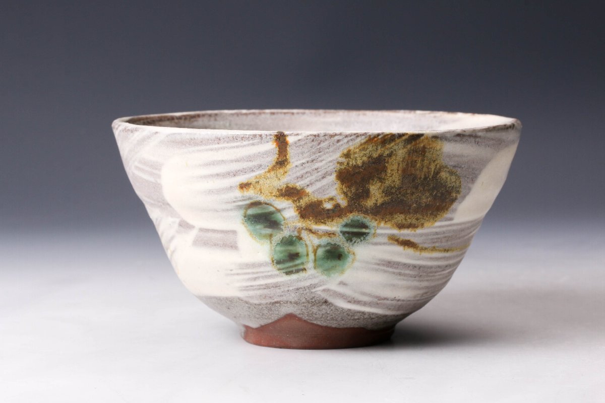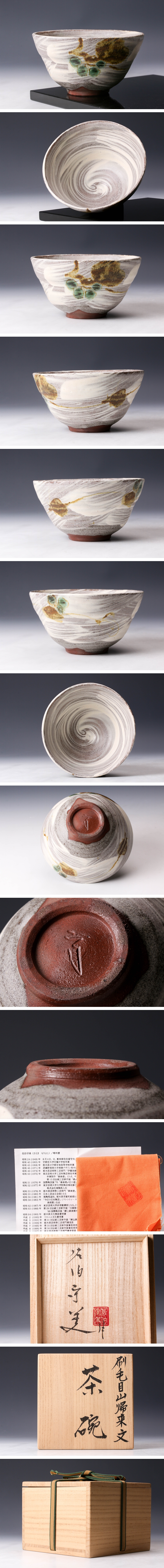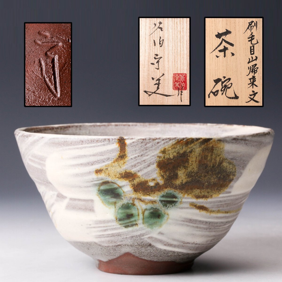【佳香】佐伯守美 刷毛目山帰来文茶碗 共箱 共布 栞 茶道具 本物保証