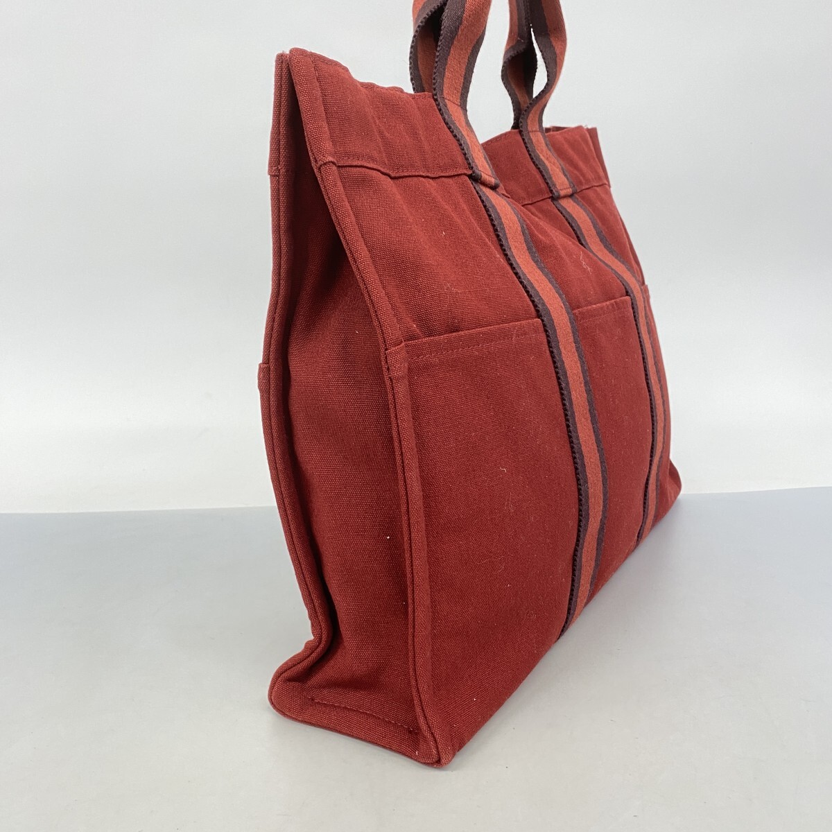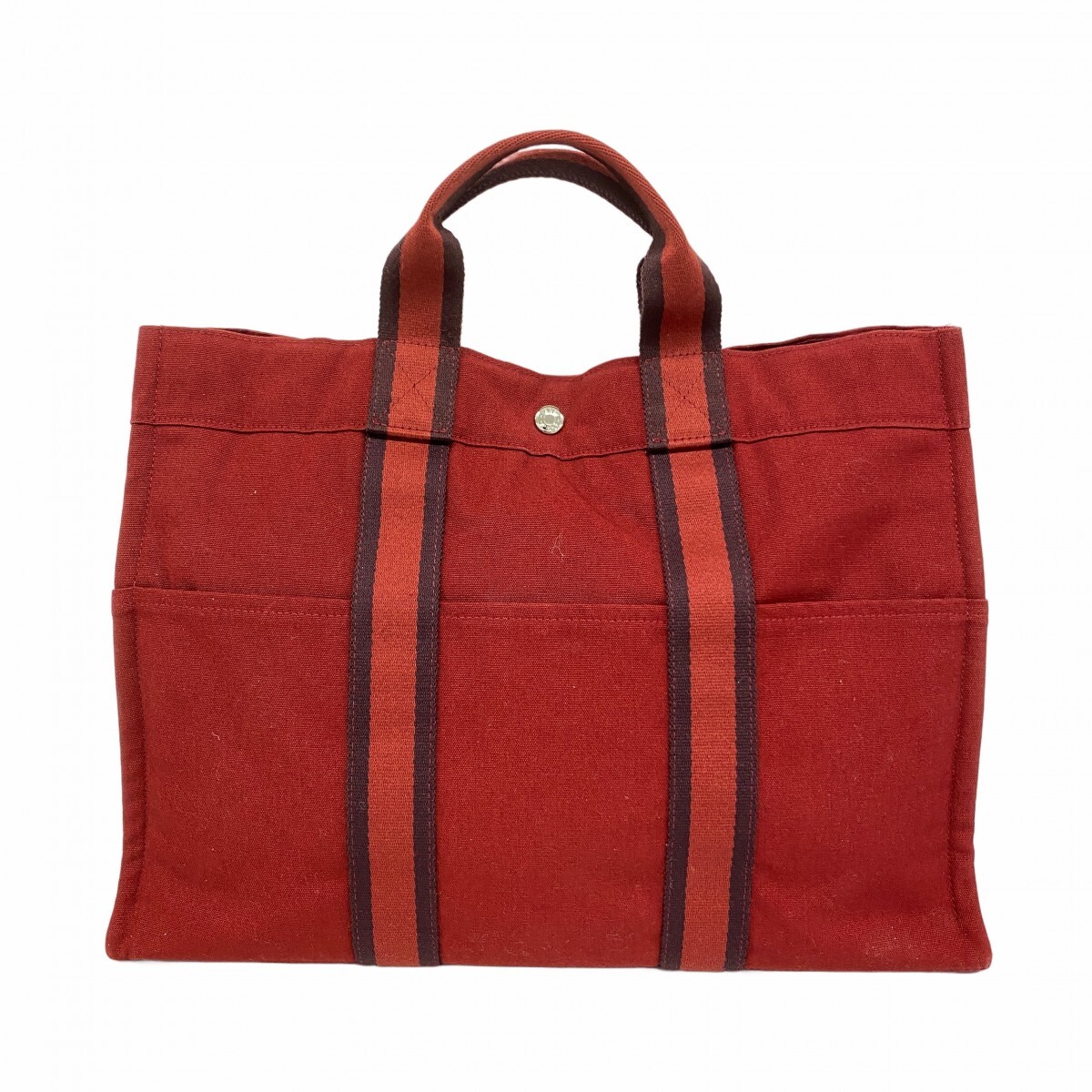 【5pa1085】エルメス トートバッグ フールトゥMM キャンバス ボルドー シルバー金具【中古】レディース