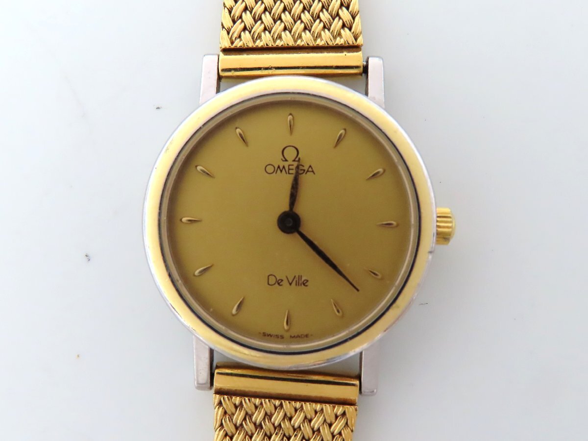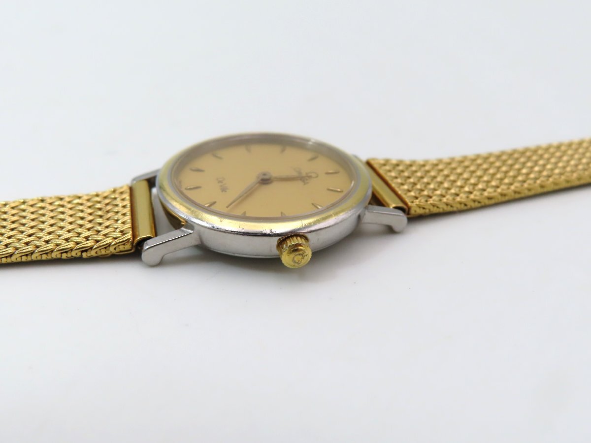 1円 オメガ デヴィル GP/SS シャンパン文字盤 レディース 稼働 QZ 29778 LKRN
