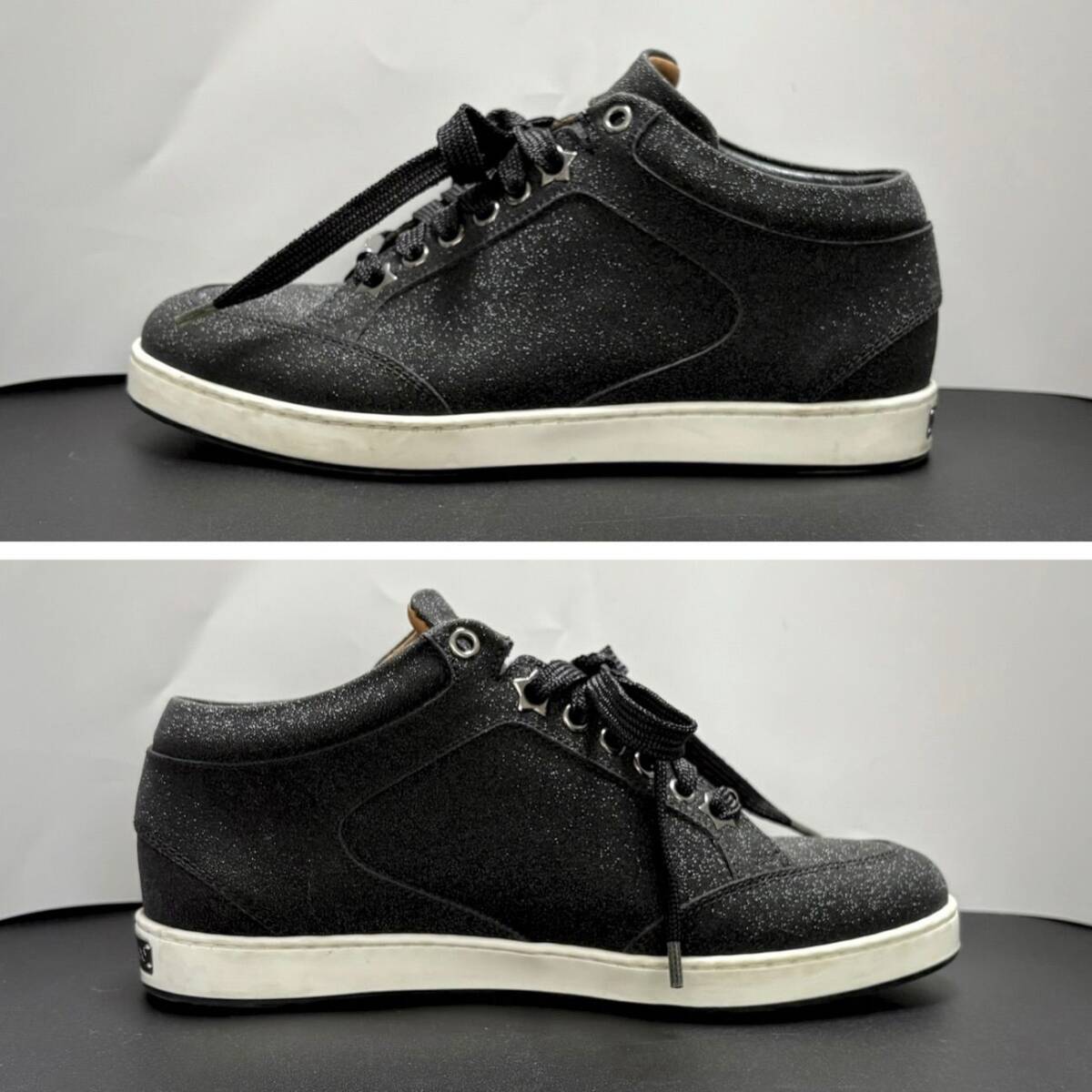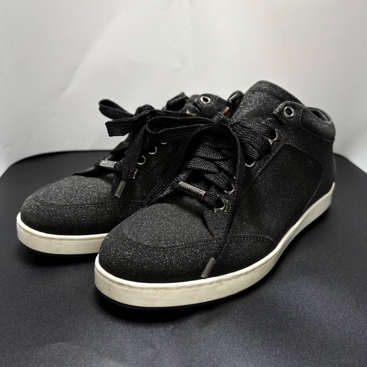 スニーカー グリッター ラメ ロゴ プレート ローカット ブラック 黒 シューズ