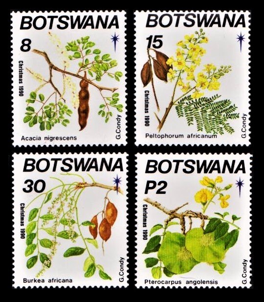 la658y1-6b ボツワナ1990年 クリスマス 植物・4枚完