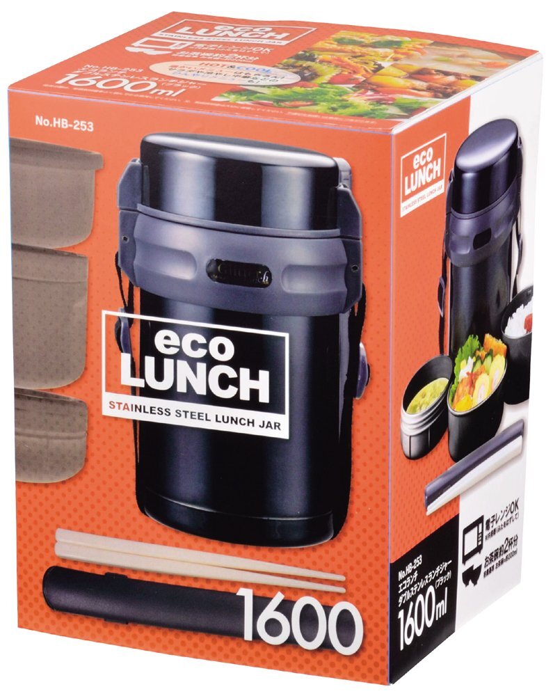 パール金属 保温 弁当箱 茶碗 約 2 杯分 ダブルステンレス ランチジャー 1600 ブラック エコランチ HB-253
