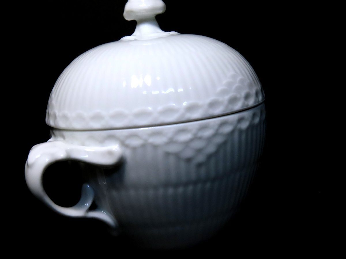 ■ロイヤルコペンハーゲン  シュガーポット  ホワイトフルーテッド・ハーフレース   〈同梱対象商品〉