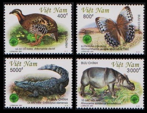 la620y3-1v ベトナム2001年 カッティエン国立公園の動物・4枚完