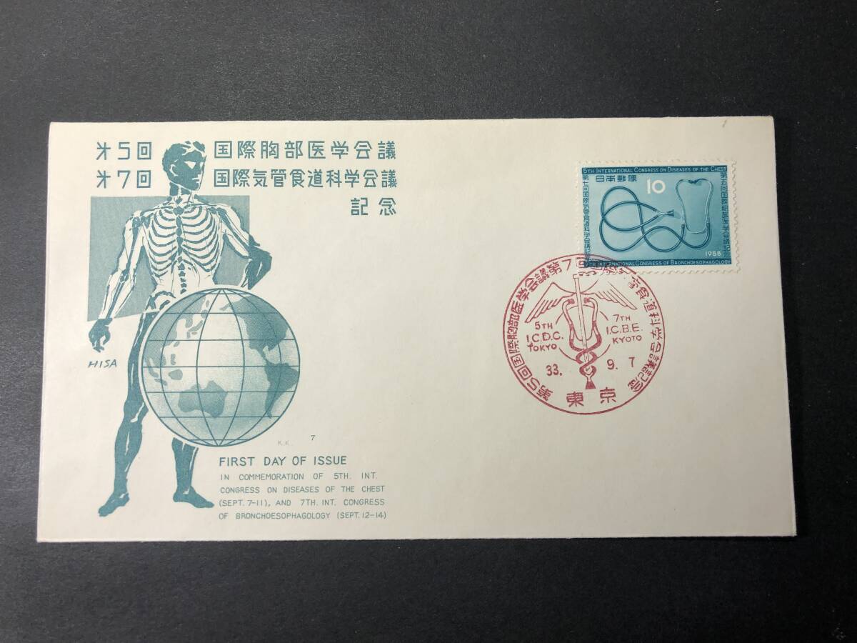 ★FDC 初日カバー★第5回国際胸部医学会議記念・第7回国際気管食道科学会議記念 「聴診器」 印刷局凹版 昭和33年発行 Y9673