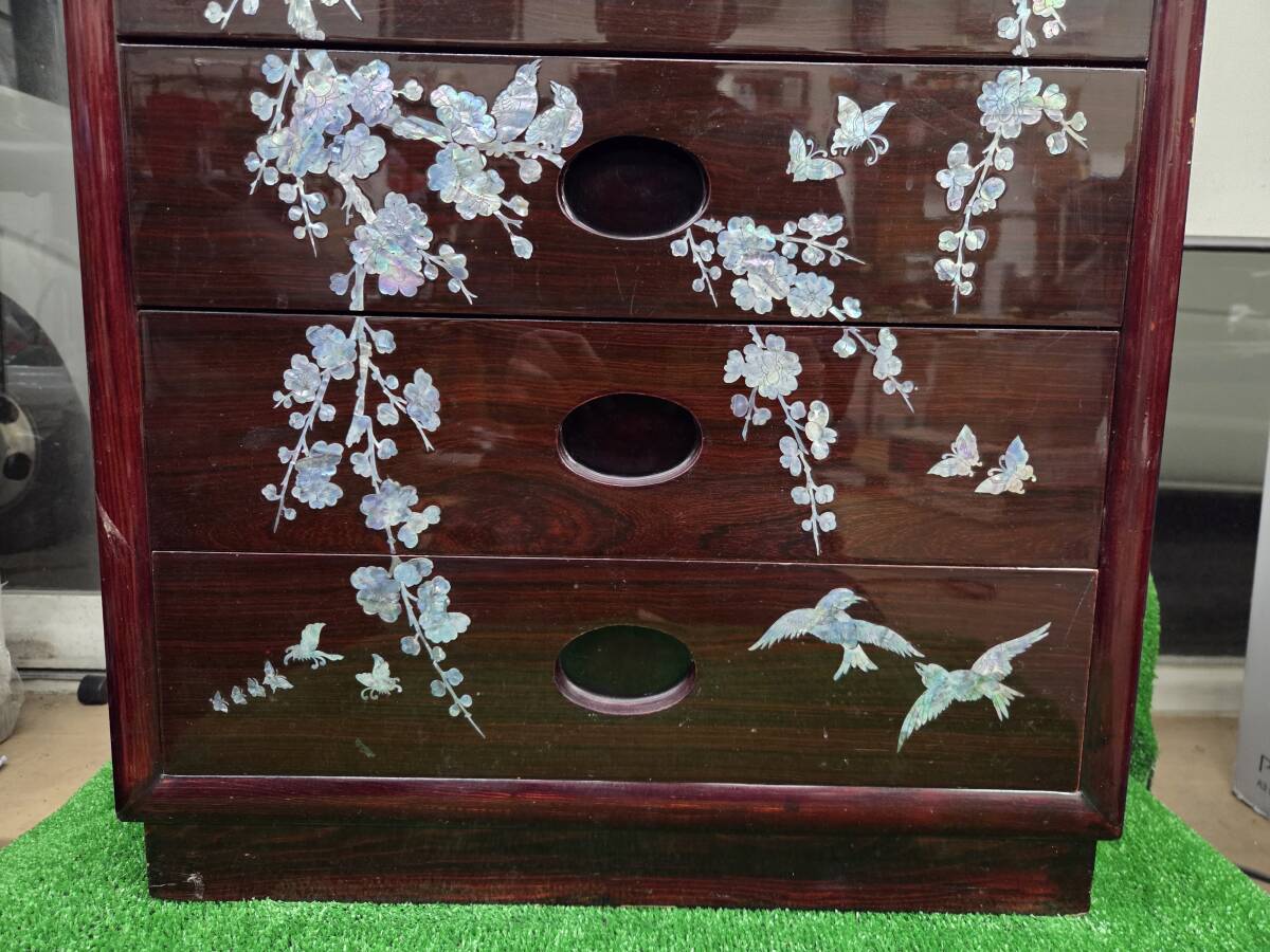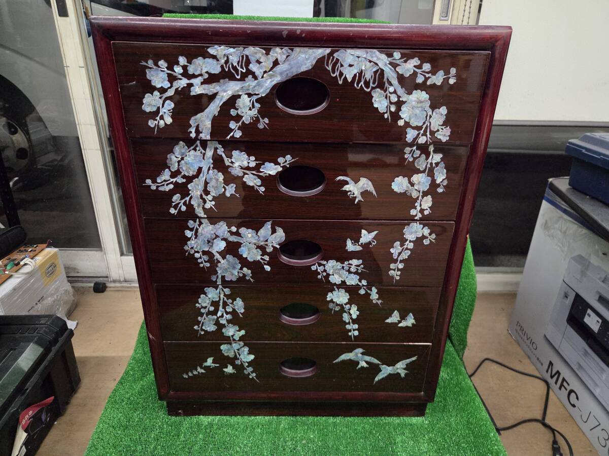 ■【直接引取限定】螺鈿細工 家具 ミニチェスト 唐木 花梨 収納棚 5段 中古 です。