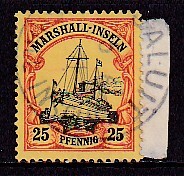 48 ドイツ植民地【使用済】<「独領マーシャル諸島 1901 SC#17 皇帝専用船《ホーエンツォレルン》 25pf」オンペーパー >