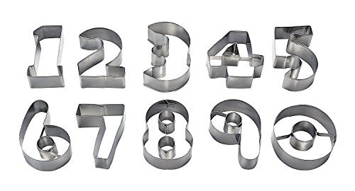 パール金属、 ステンレス製 数字 抜き型10個セット。 お菓子つくりの定番。誕生日やクリスマス、バレンタインなどのイベントで大活躍。 0123・・・9までの抜き型でビックサイズの数字クッキーができる。