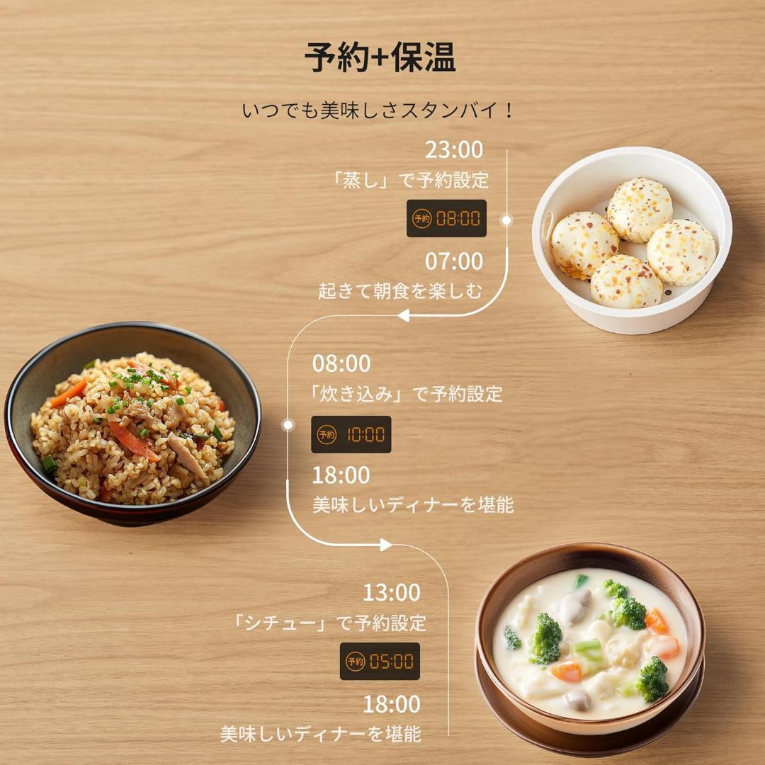 予約機能は最大24時間先まで設定でき、12時間保温にも対応。