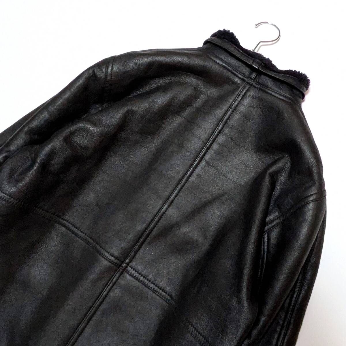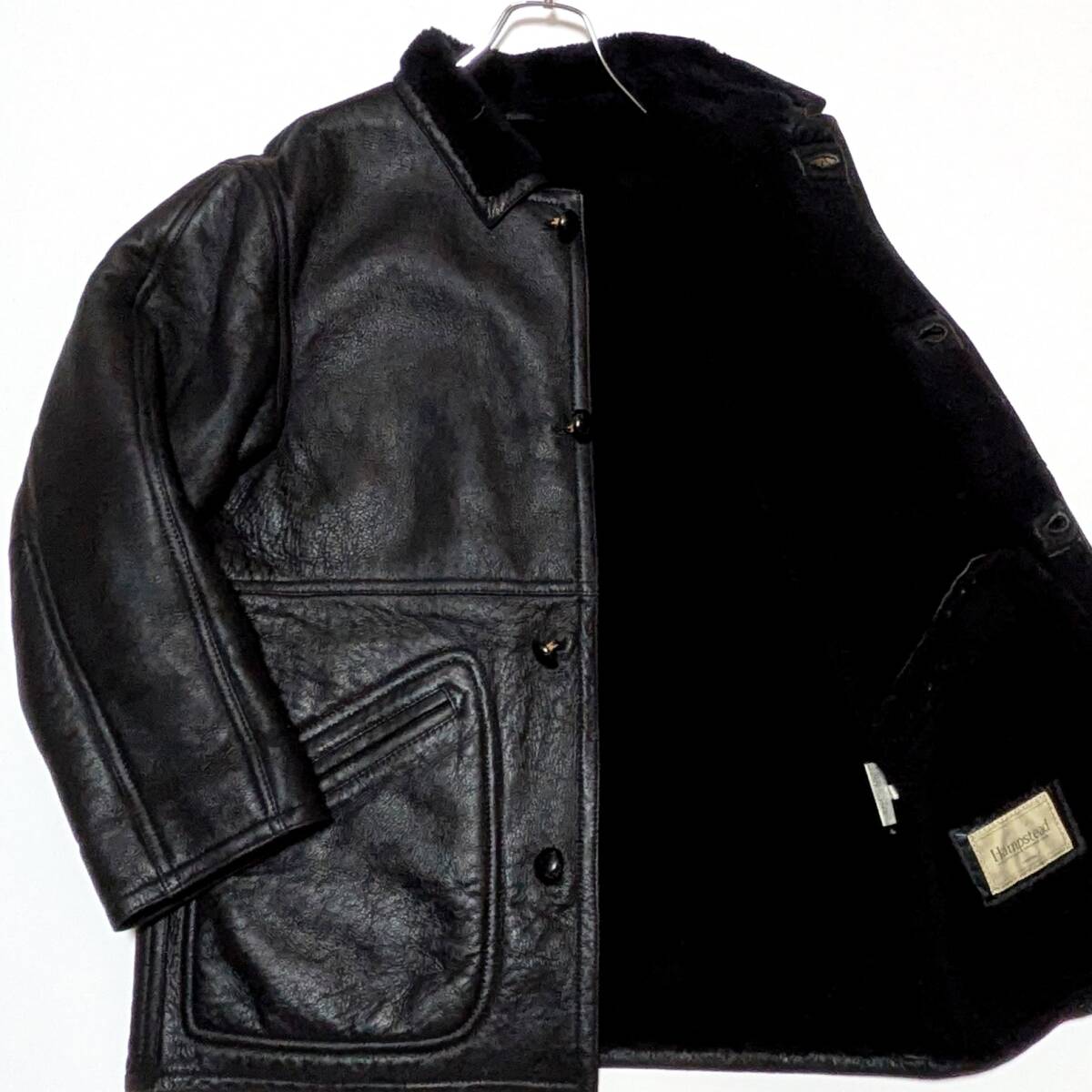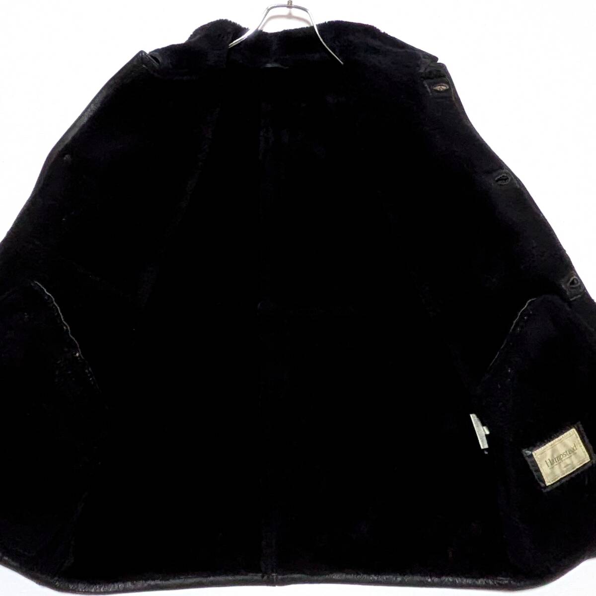 ムートコート 裏ボア 胡桃ボタン シープスキン ブラック メンズ Hampstead LONDON レザージャケット ロング丈 黒