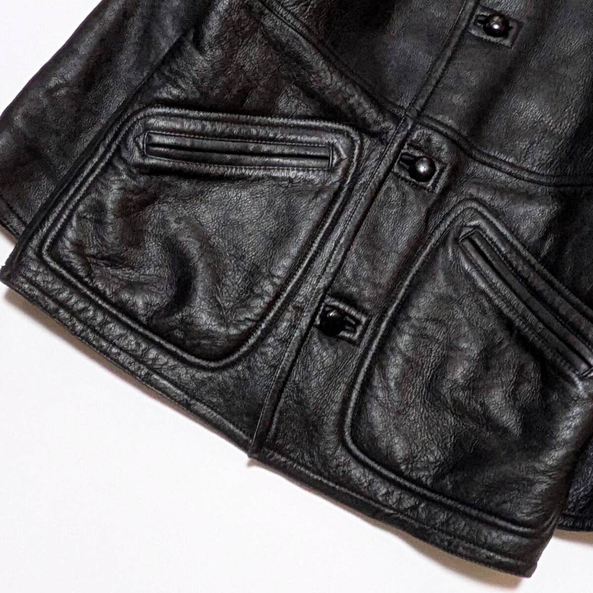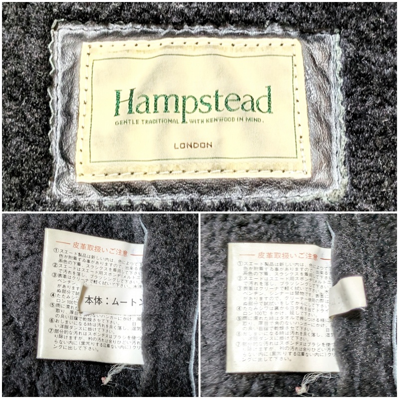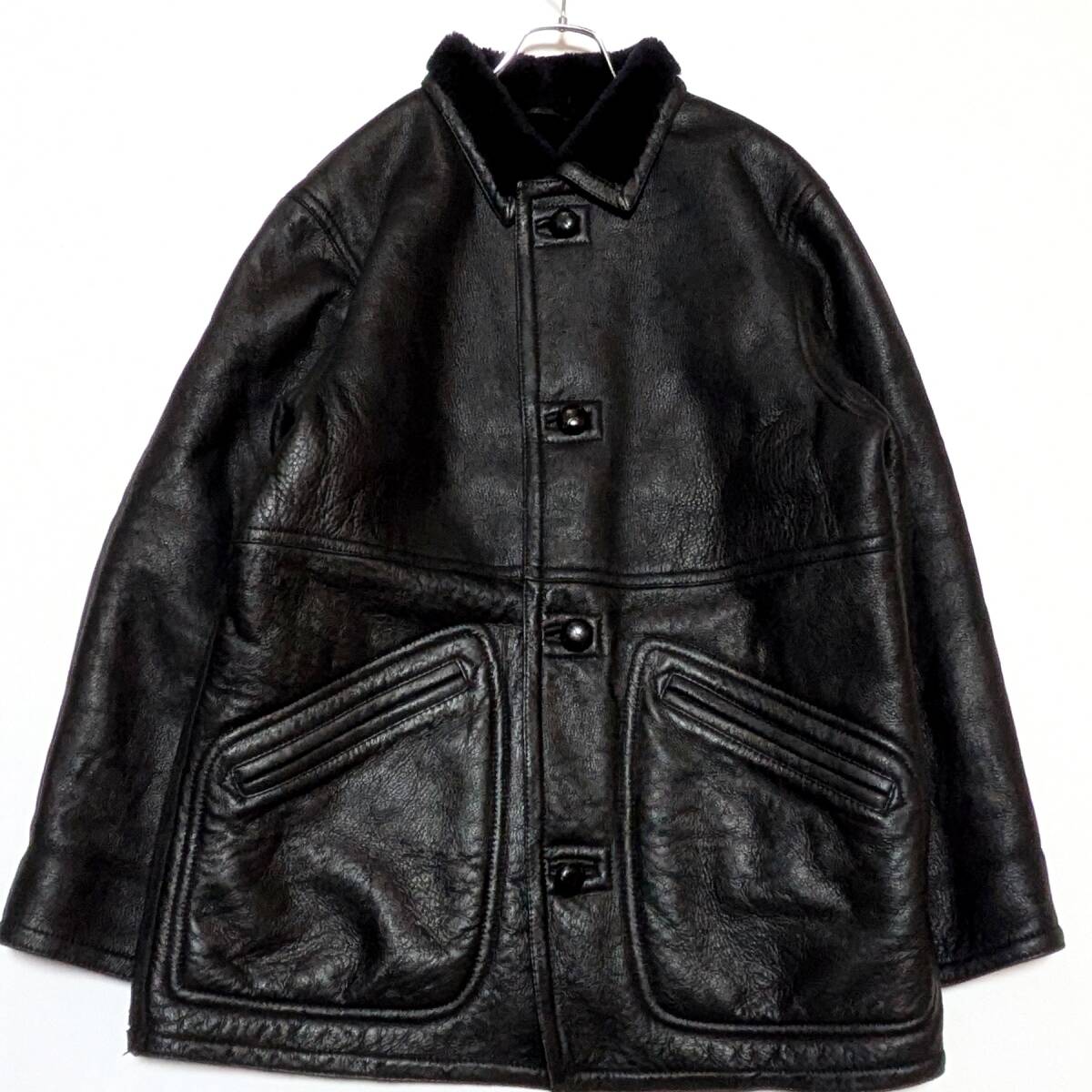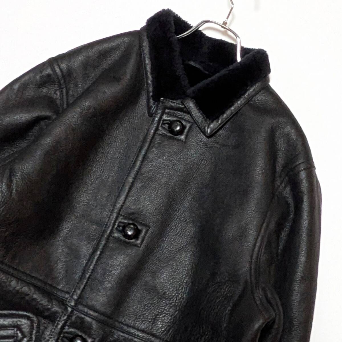 ムートコート 裏ボア 胡桃ボタン シープスキン ブラック メンズ Hampstead LONDON レザージャケット ロング丈 黒