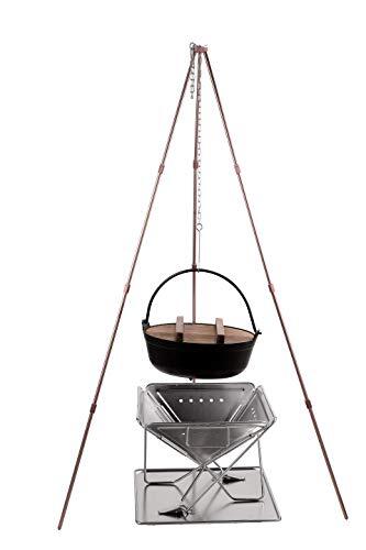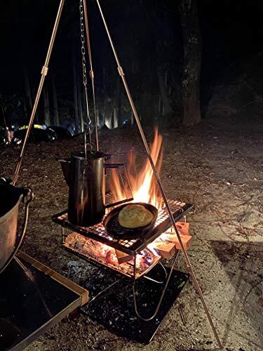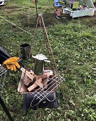ダッチオーブンや鍋料理等の吊り下げ料理に最適な四段三脚スタンド、トライポッドです。高さ調整が可能なフック付きチェーンが便利です。四段式の脚は連結式となっていてコンパクトに収納できるキャリーケース付きのポータブルタイプです。 サイズ:幅75×奥行75×高さ110cm、脚の長さ120cm、重量:620g、収納ケース41cmx10cm、三脚スタンドはアルミ合金、吊り下げチェーンの長さ70cm。脚の直径は10mm、耐荷重は約20kg、ダッチオーブンは撮影の為の物で商品には含まれません。 高さがある為、別売りの当店取扱の焚き火台ファイアースタンドと共に使用するとキャンプ場での雰囲気もバッチリですね!楽しくてワクワクします。 トライポッドはケース収納時は41cmx10cm、焚き火台ファイアースタンドはケース収納時は65cmx10cmと共に非常にコンパクトにまとまりますのでソロキャンプやツーリングの 相棒にもピッタリです。 もちろんファミリーキャンプでもOK! 多彩なシーンで活躍してくれます。ゼヒあなたのキャンプ道具の仲間にこのトライポッドを加えてあげて下さい。いい仕事してくれますよ! *予告無く改良等で仕様が変更される場合があります。