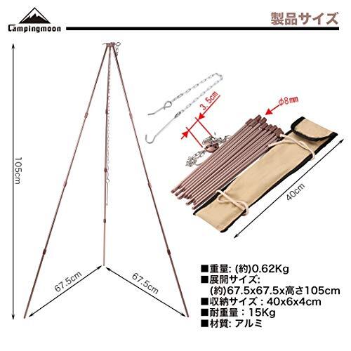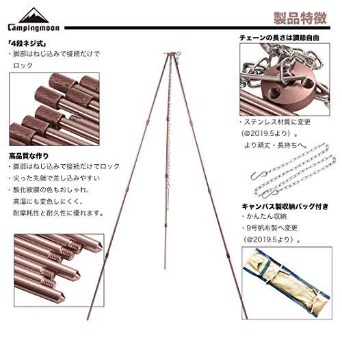 キャンピングムーン(CAMPING MOON) トライポッド L 4段折り 焚き火三脚 耐重量15KG 収納ケース付き MS-105-BRZ