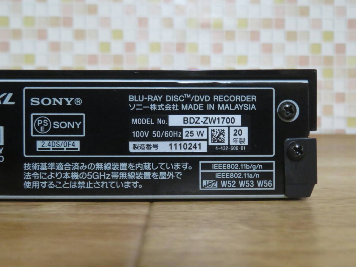 SONY ソニー BDZ-ZW1700 HDD/BD ブルーレイレコーダー 2020年製 室内保管品 非喫煙環境です