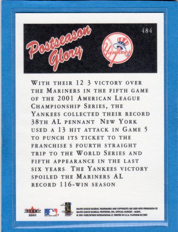 POSTSEASON GLORY #484 YANKS SPOIL SEATTLE'S DREAM ; RETURN TO SERIES *2001年ALCS ヤンキース対マリナーズ ヤンキース・ファンの方、是非どうぞ! |