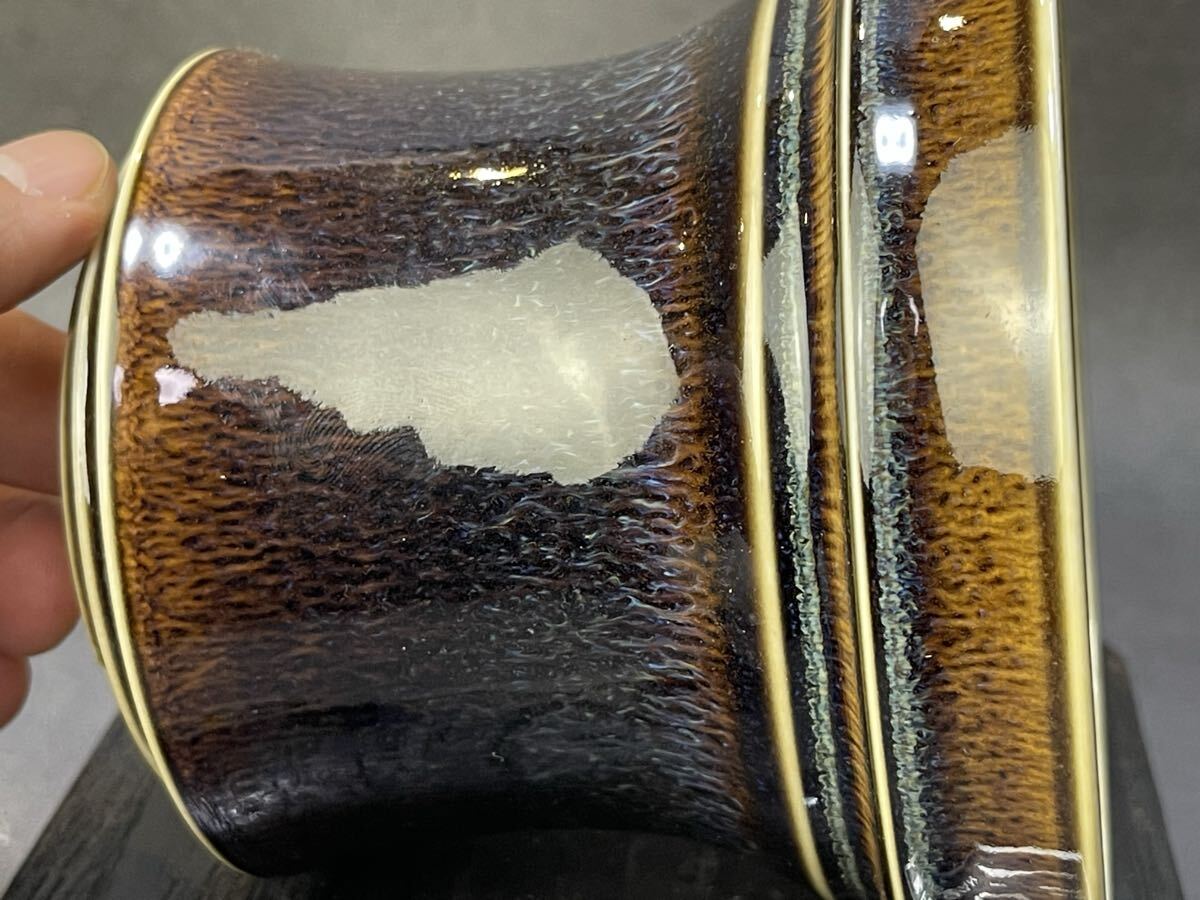 焦げ茶から深藍へ、さらに紫を帯びた光が混ざり合う「星雲天目」。