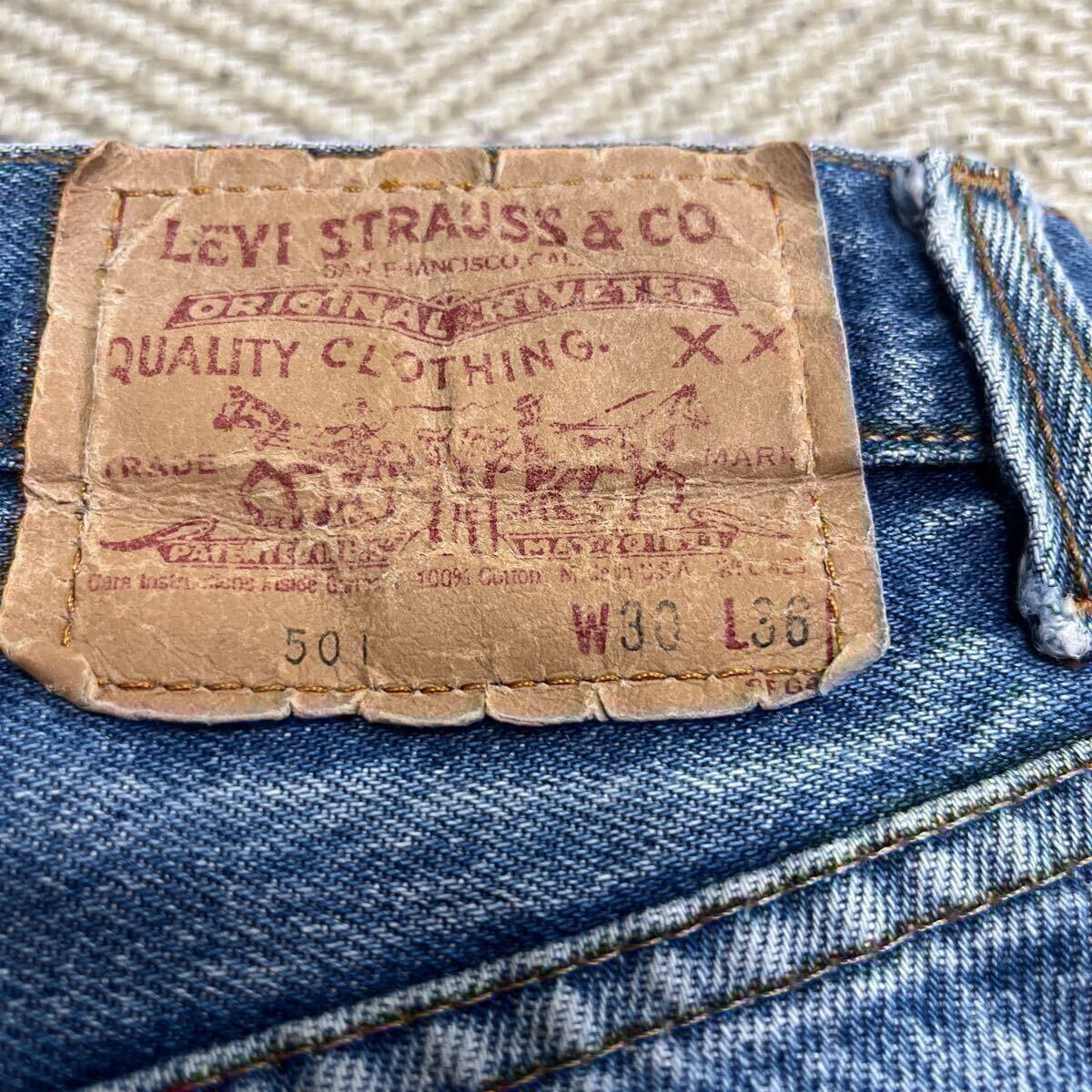 黒カンヌキからインシームシングル、裾チェーンステッチを経てcare~パッチ後の501ですね。