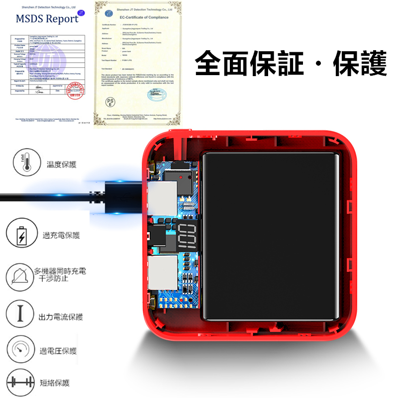 *付属品の充電ケーブル(テスト用、各スマホ機器の純正充電ケーブルを使用することをお勧めします。他のケーブルは充電スピードが遅くなる可能性がございます。)