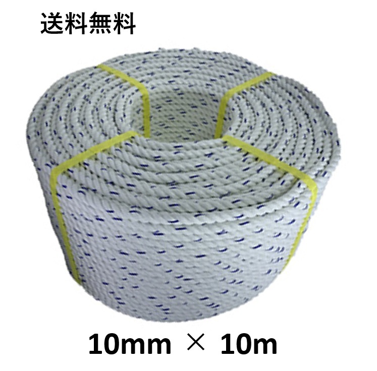 送料無料 スパンエステルロープ エステルスパンロープ 10mm×10m 綱引きロープ 三つ打ち ロープ 線入