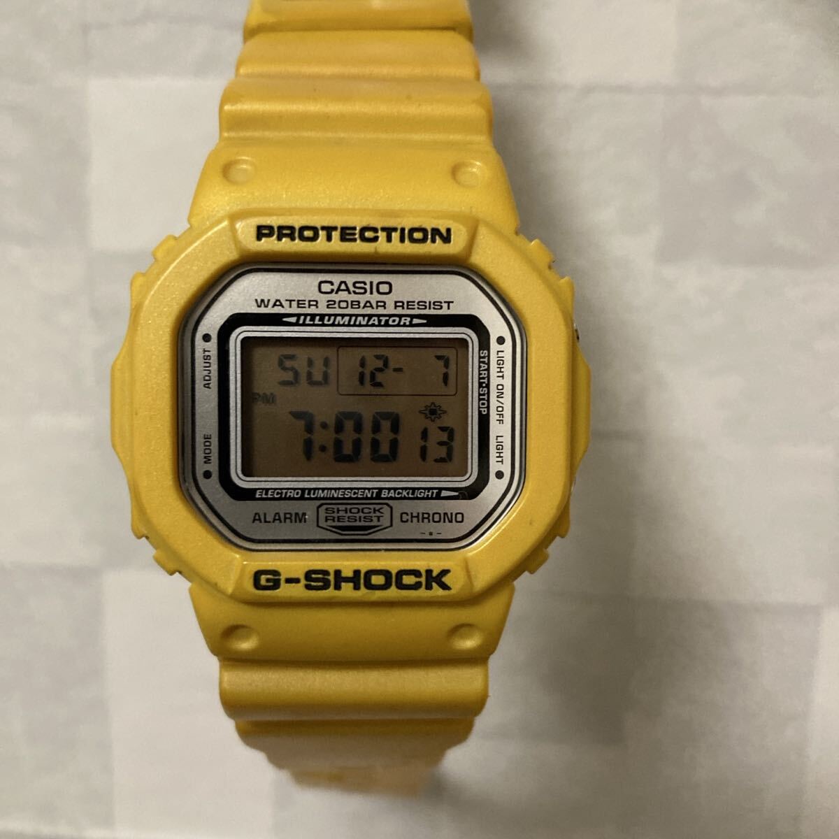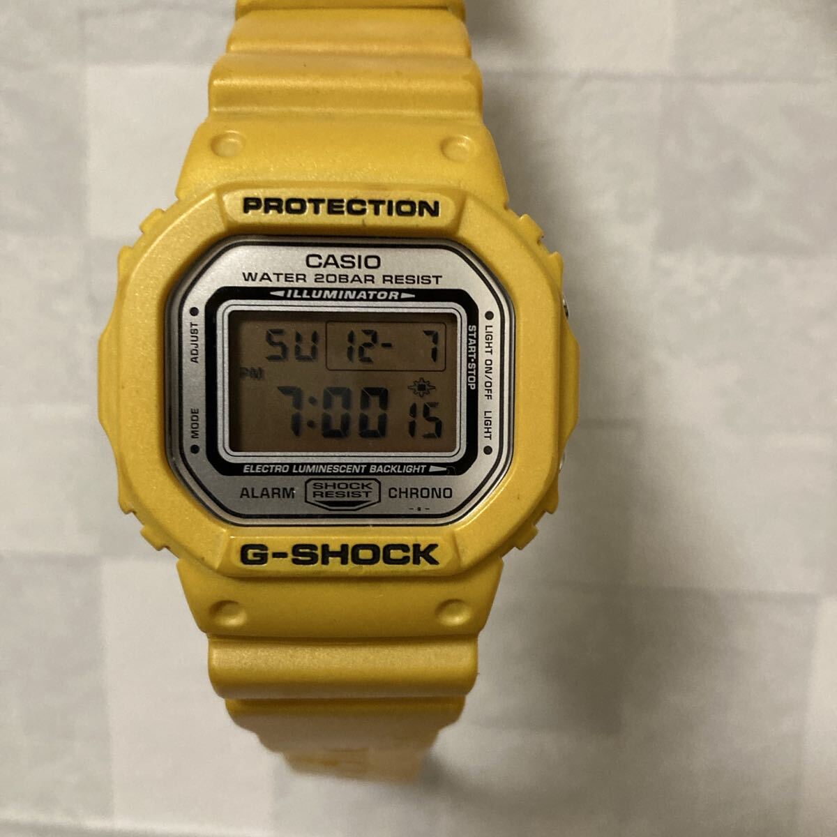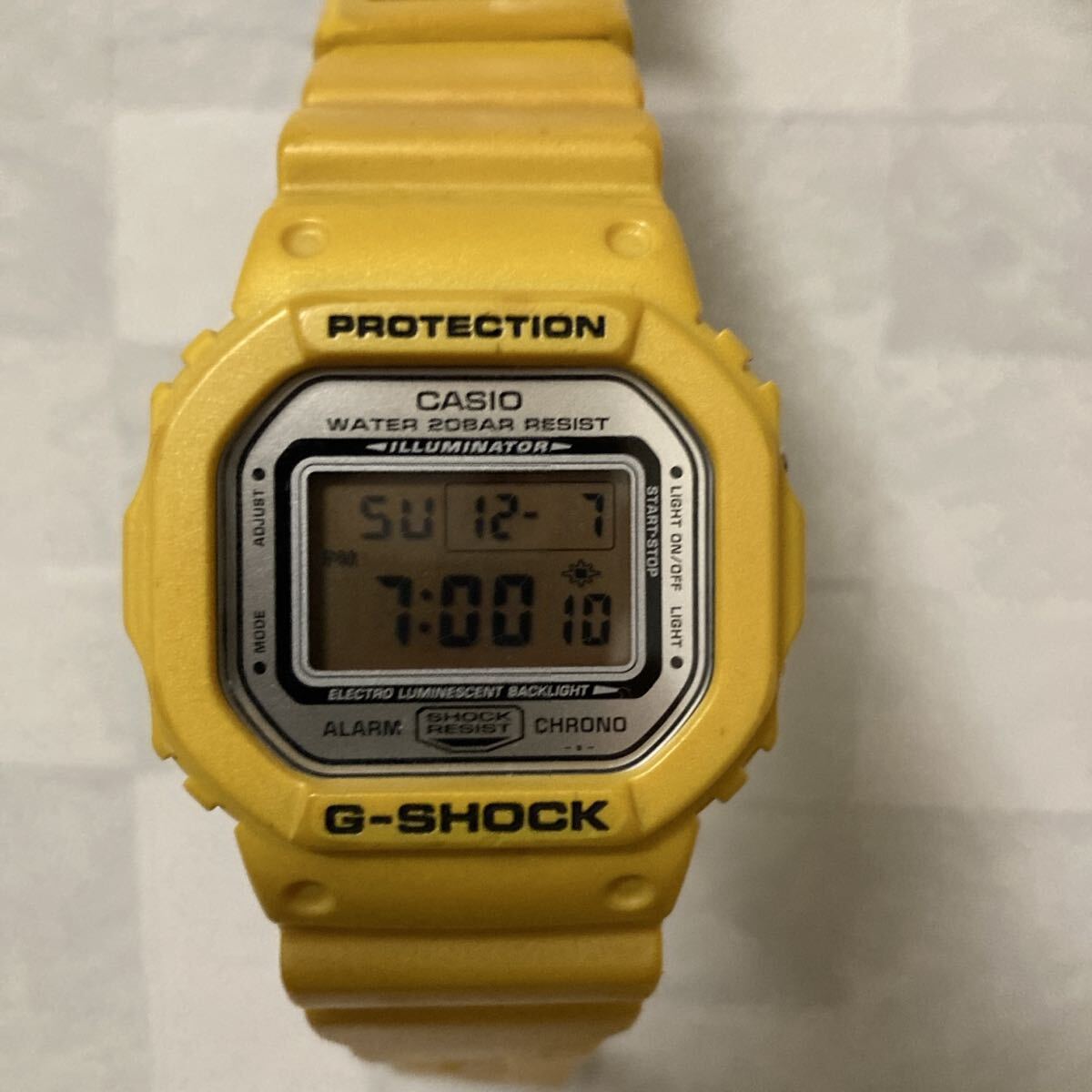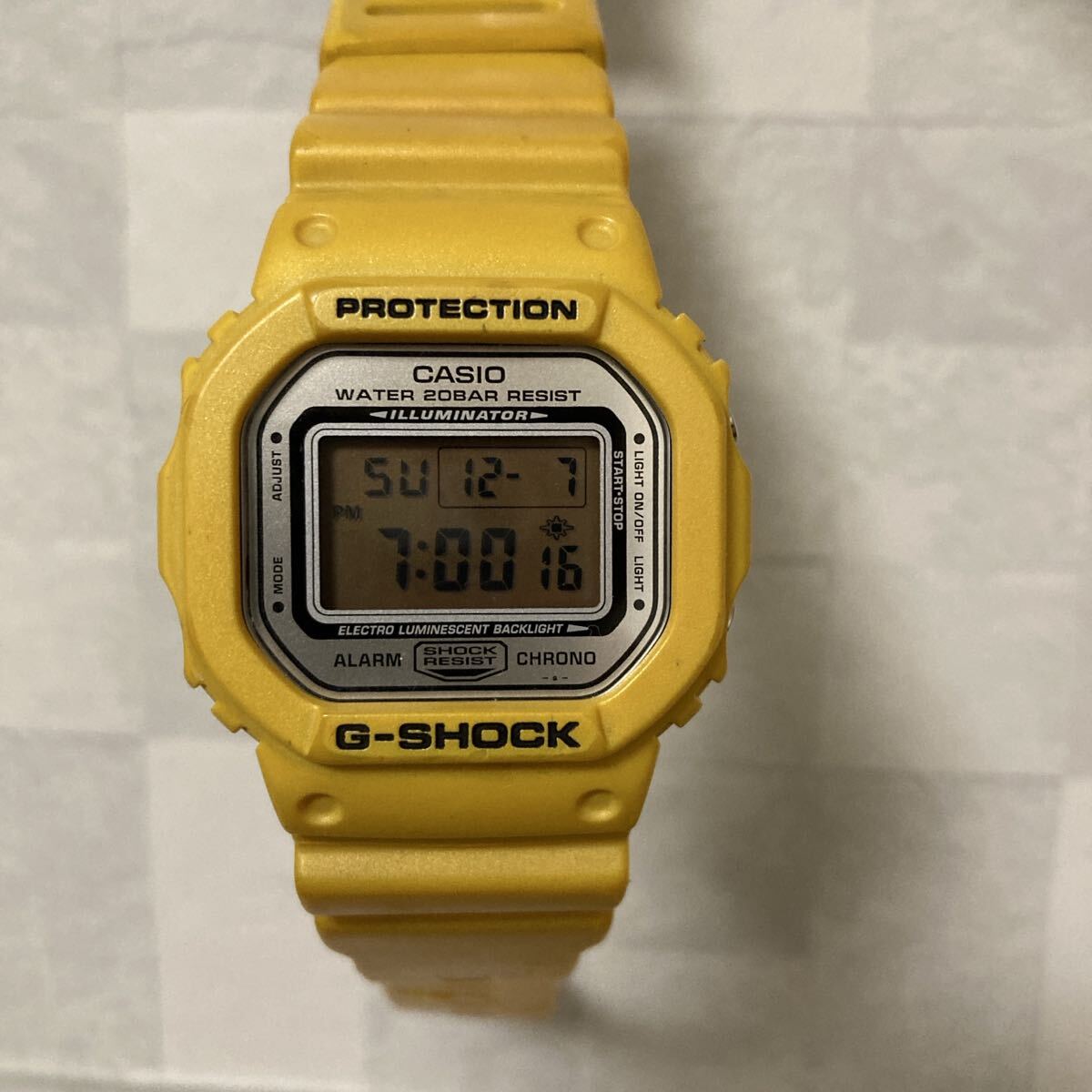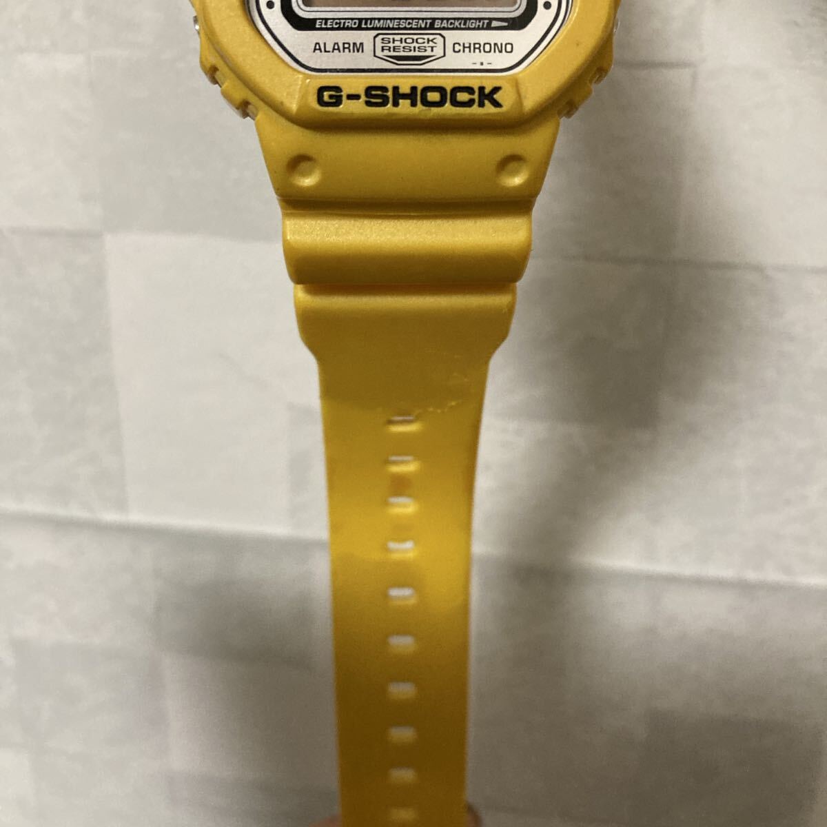 G-SHOCK腕時計になります。イエローが映えてかなりカッコよくオシャレです。アウトドアファッション、キャンプ、ウインタースポーツ、マリンスポーツなどにいかがでしょうか。ボディきれいですがベルトはがれあります。