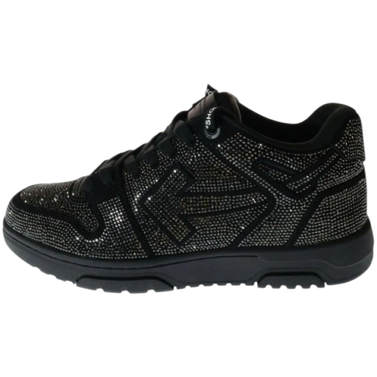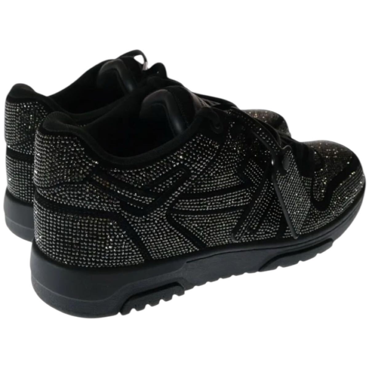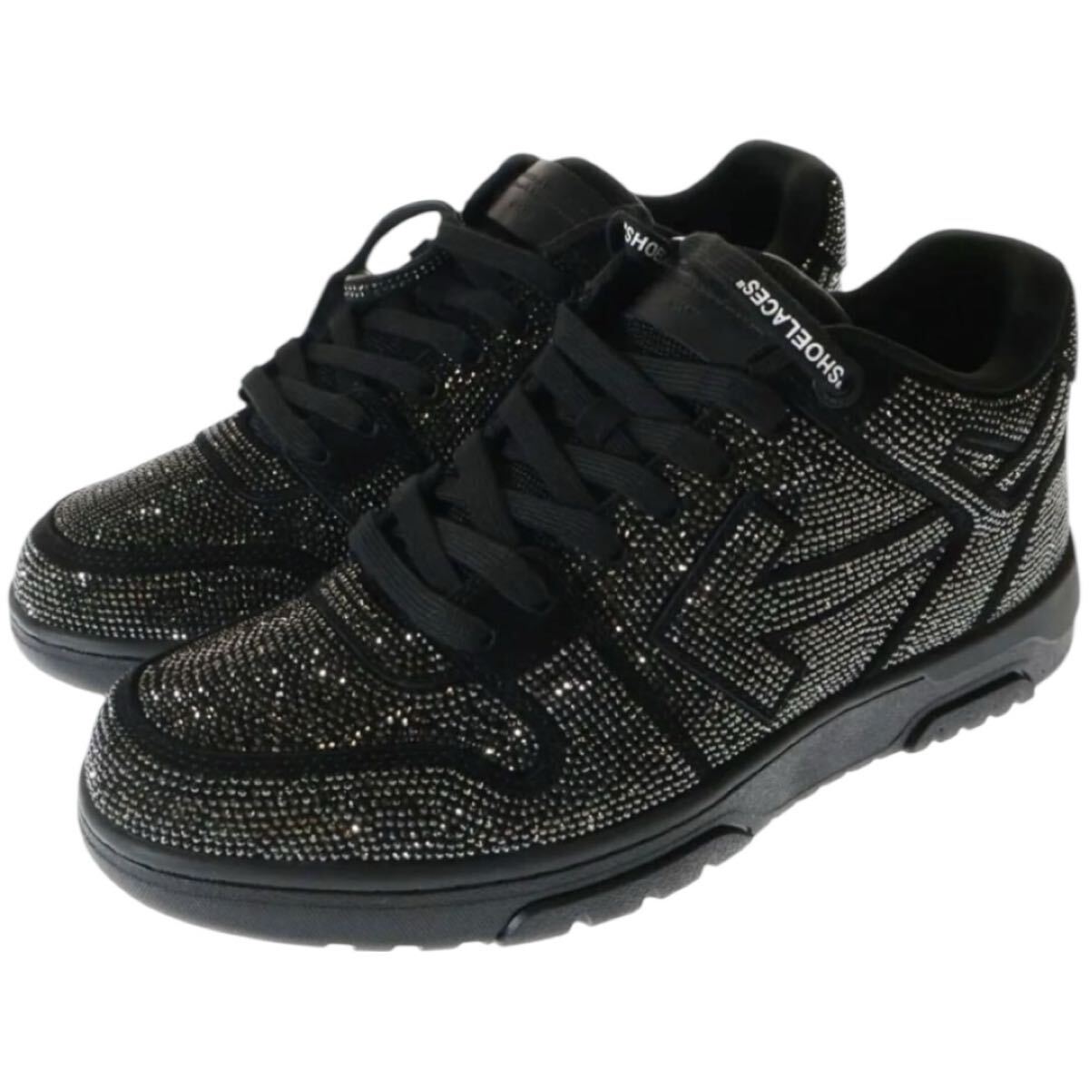OFF-WHITE の人気モデル「Out Of Office」に、全面ラインストーンをあしらった特別仕様。光を受けて圧倒的な輝きを放つため、ステージ/イベント/差別化を狙うコレクターやファッション好きに強く刺さる一足です。