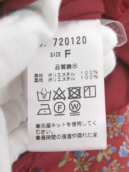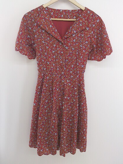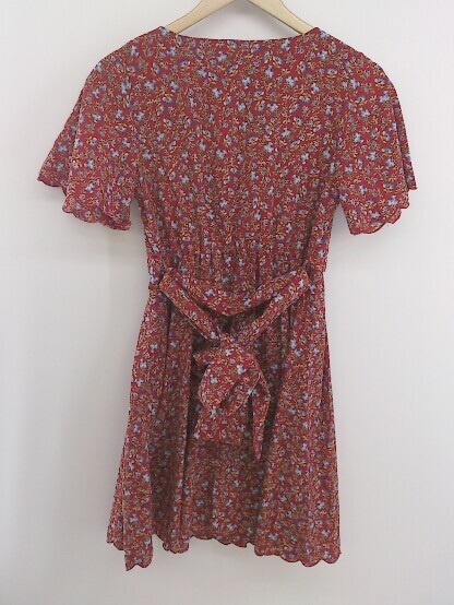 ◇ ◎ NICE CLAUP ナイスクラップ 花柄 フラワー 半袖 ミニ ワンピース サイズF レッド マルチ レディース E