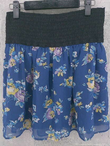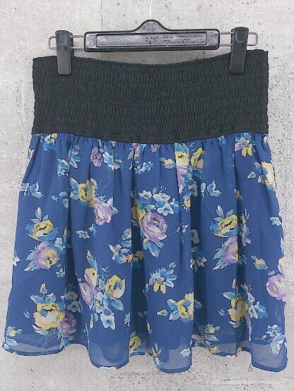 ◇ SHIPS シップス 花柄 フラワー ミニ フレア スカート ネイビー マルチ レディース