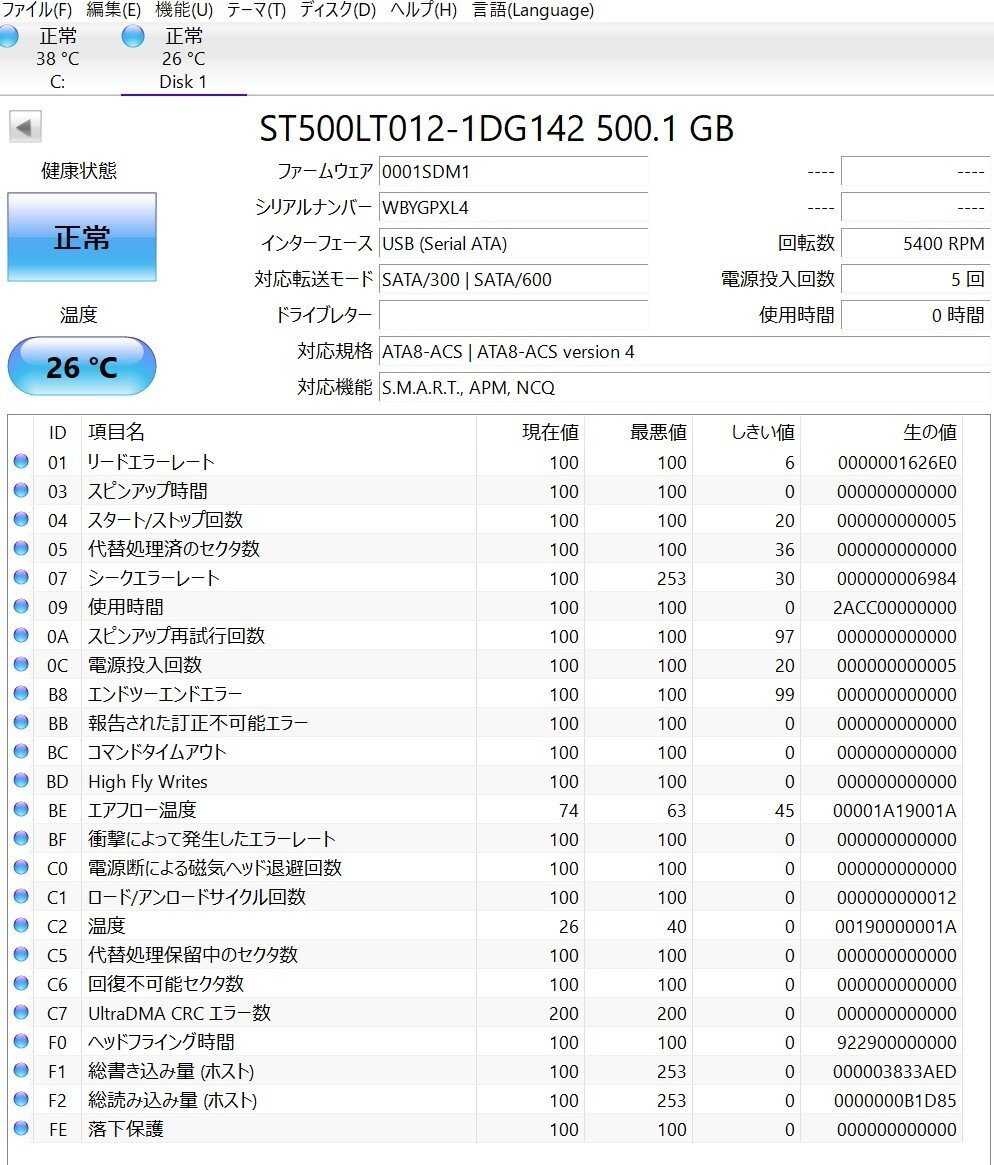 KN1240 SEAGATE 2.5インチ HDD 500GB ST500LT012 使用時間:0時間