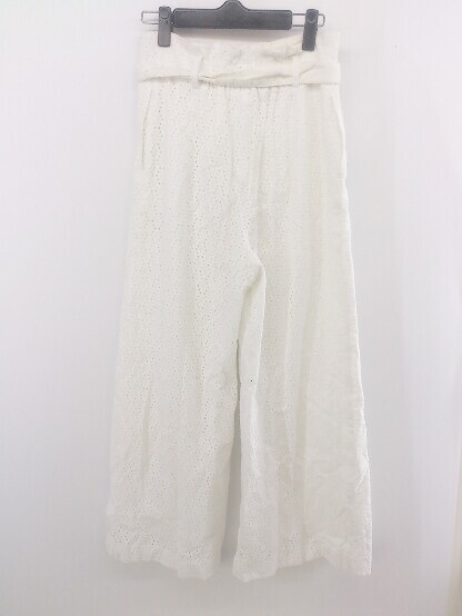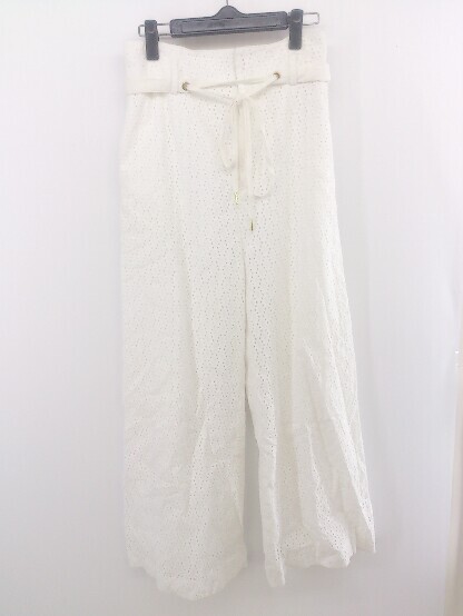 ◇ ◎ ROSE BUD ローズバッド 刺繍 ハイウエスト ワイド パンツ サイズM ホワイト系 レディース E