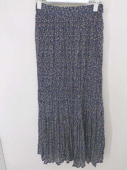 ◇ LOWRYS FARM ウエストゴム 花柄 ロング ギャザープリーツ スカート サイズF ネイビー マルチ レディース