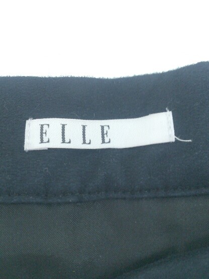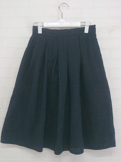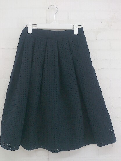 ◇ ELLE エル 透かしデザイン スウェード風 膝下丈 フレア スカート サイズ38 ネイビー レディース P