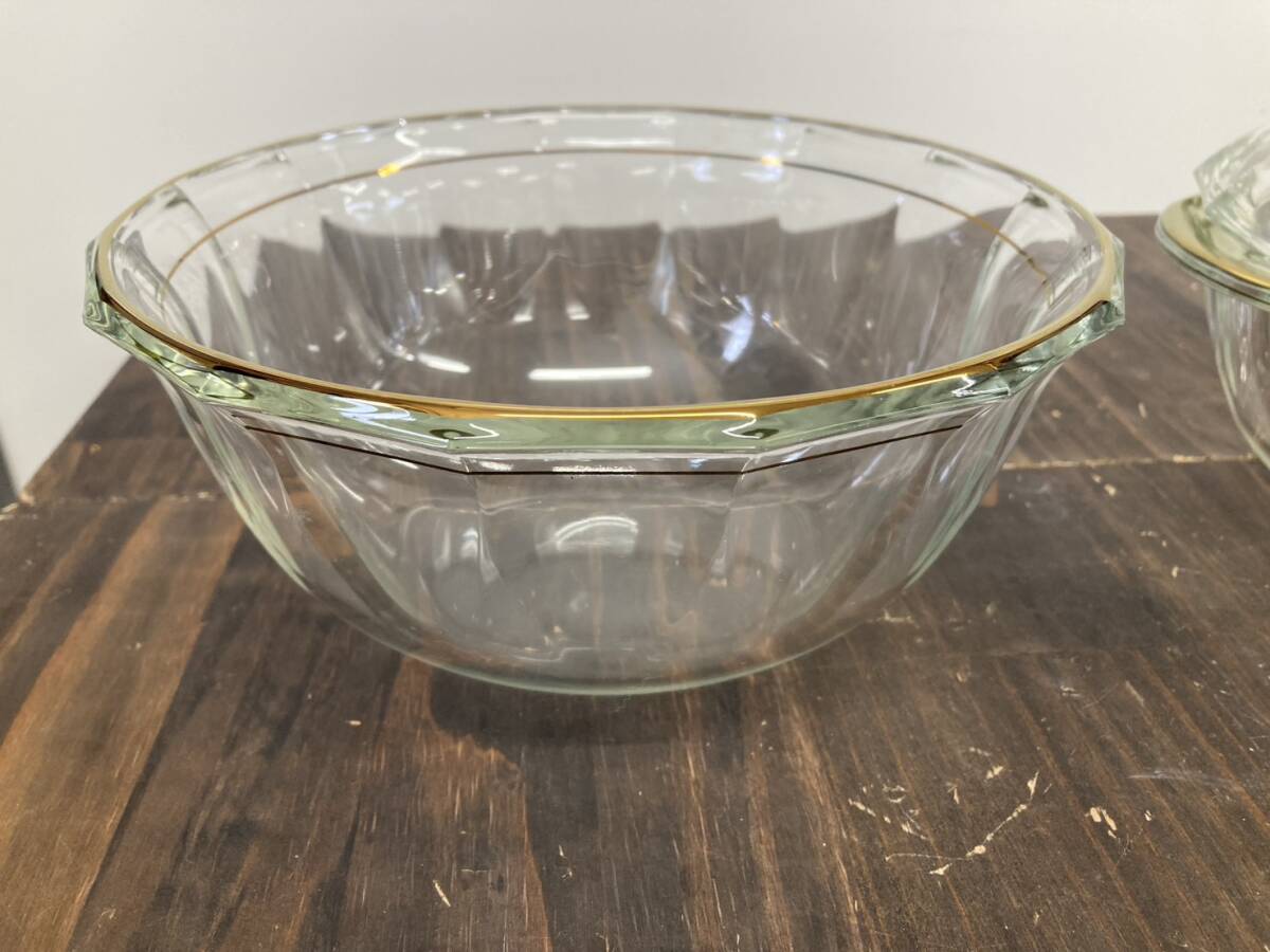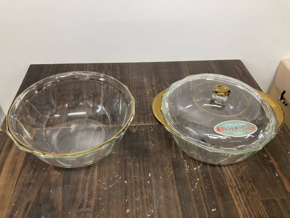 新品未使用のパイレックス製、ガラス製蓋付皿2枚セットになります。